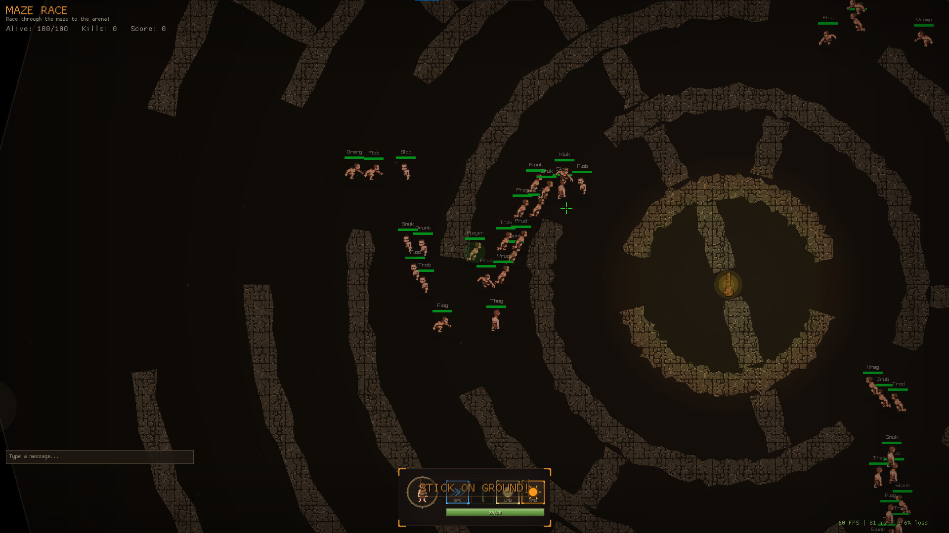 100 players drop into a cave, race through a maze, and fight over one powerful Stick. Grab it to become the strongest and the most hunted. A chaotic top-down battle royale with pixel-art mayhem, stone-throwing combat, and matches that always end in ridiculous chaos.