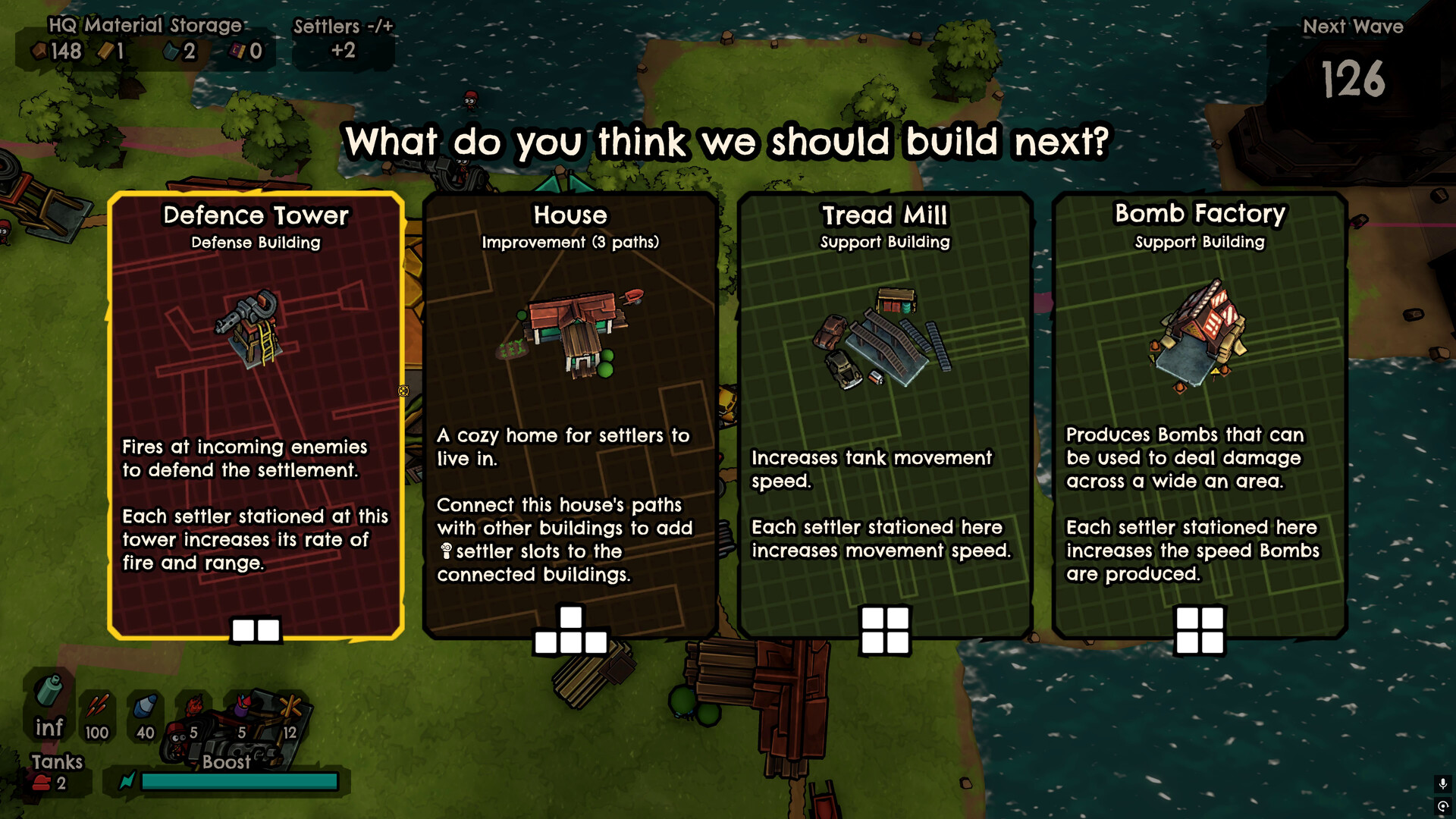 A mini action city-builder in a post-post-apocalyptic world. Grow your settlement. Fend off waves of enemies. Restore nature.
