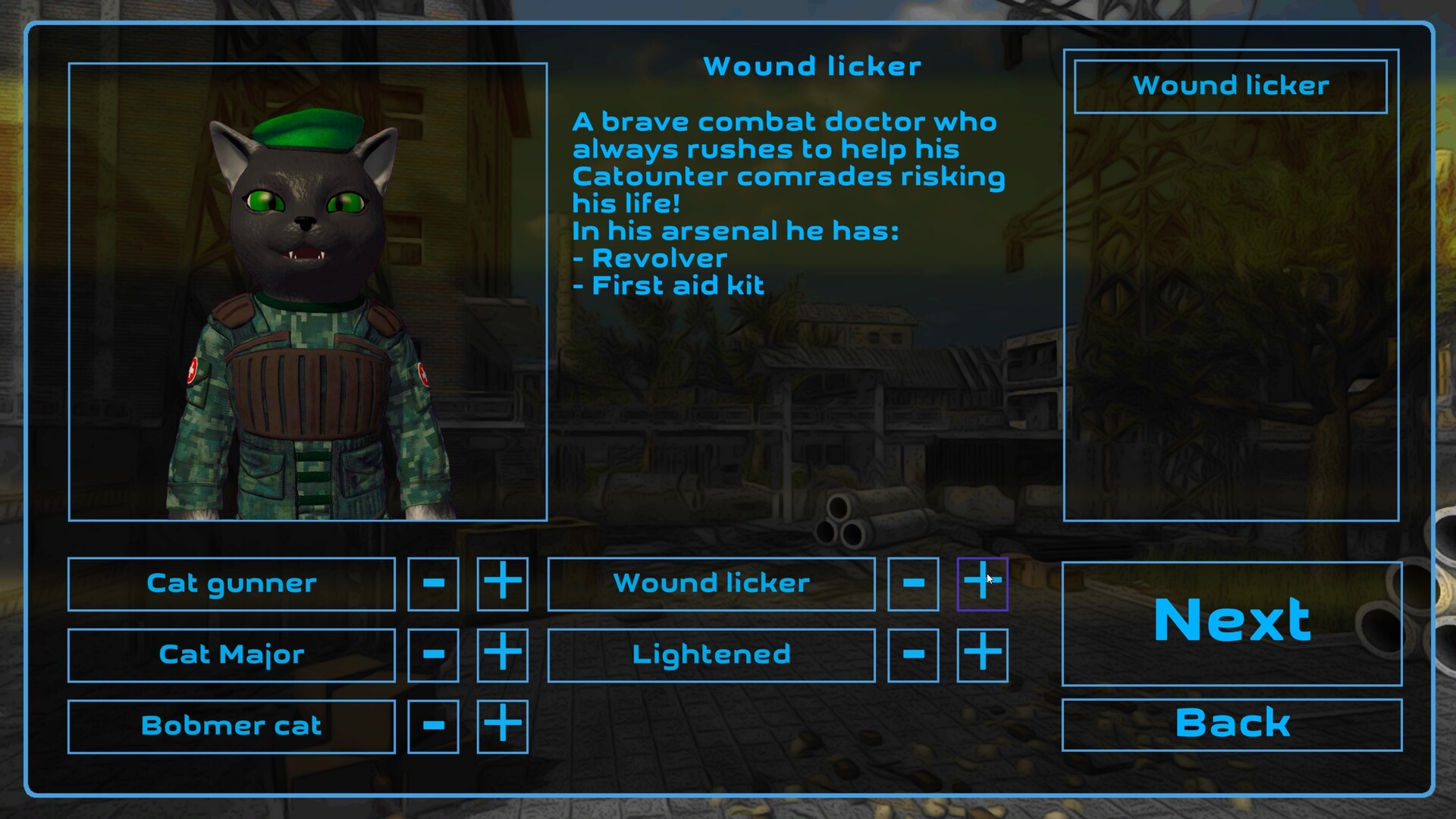 Cat's Wars is a turn-based, third-person co-op strategy game. Choose a side: the Catounter or the CaTerror, assemble a squad of 5 unique furry fighters and unleash pure feline chaos. Hide in shelters, set ambushes and destroy your enemies in battle against a friend locally or online.