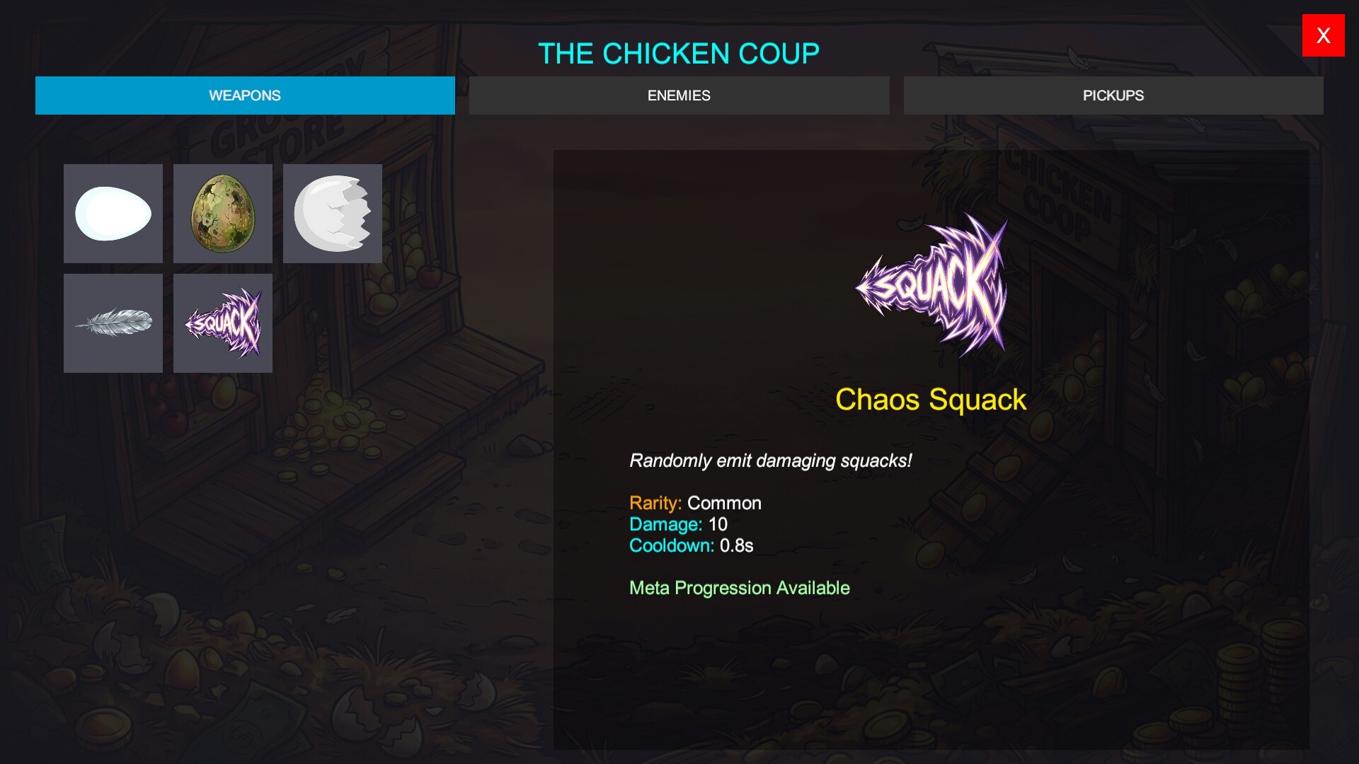 Fight back against economic chaos in this fast-paced action roguelike. Survive relentless waves of enemies using procedural upgrades to craft unique Tank, Speedster, or Glass Cannon builds. Experience intense 2D survival as a chicken reclaiming the market.