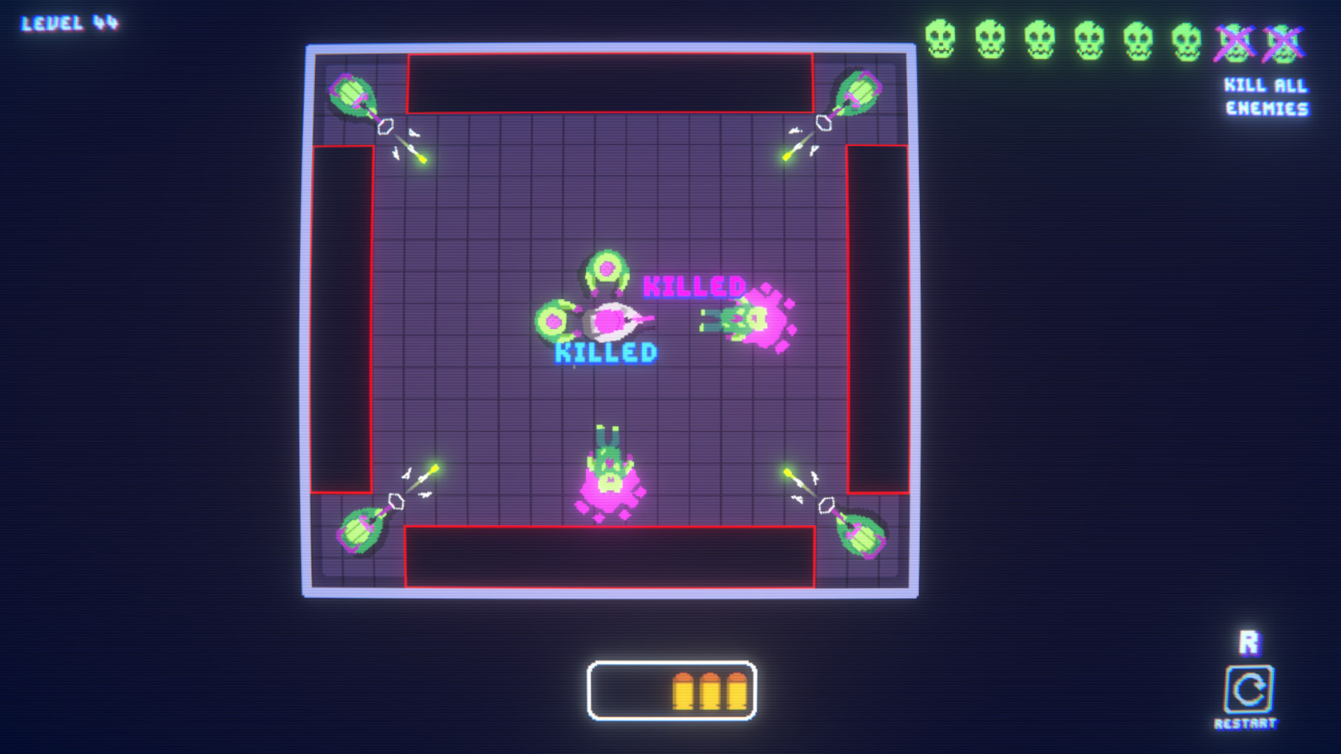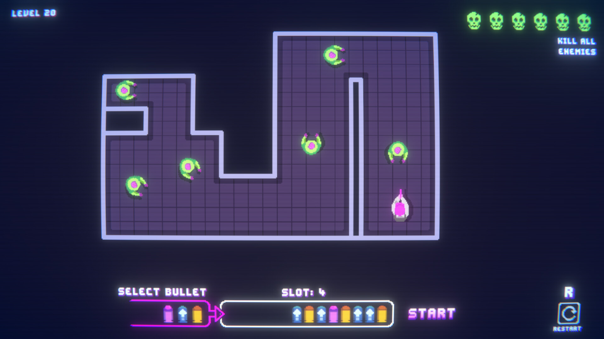 Gun Predict is a top-down strategy shooter where you must carefully choose the type of bullets to use in order to complete the levels. Create a strategy to eliminate all enemies and overcome obstacles using special projectiles.