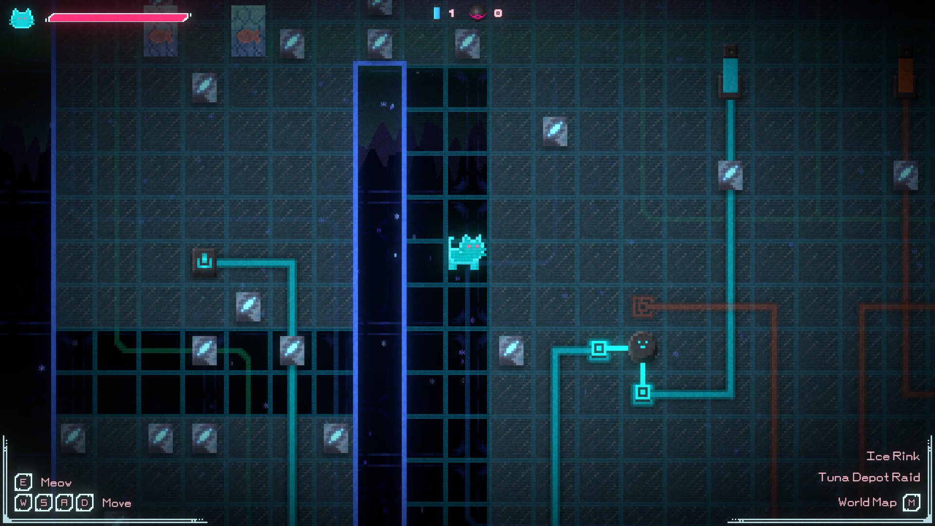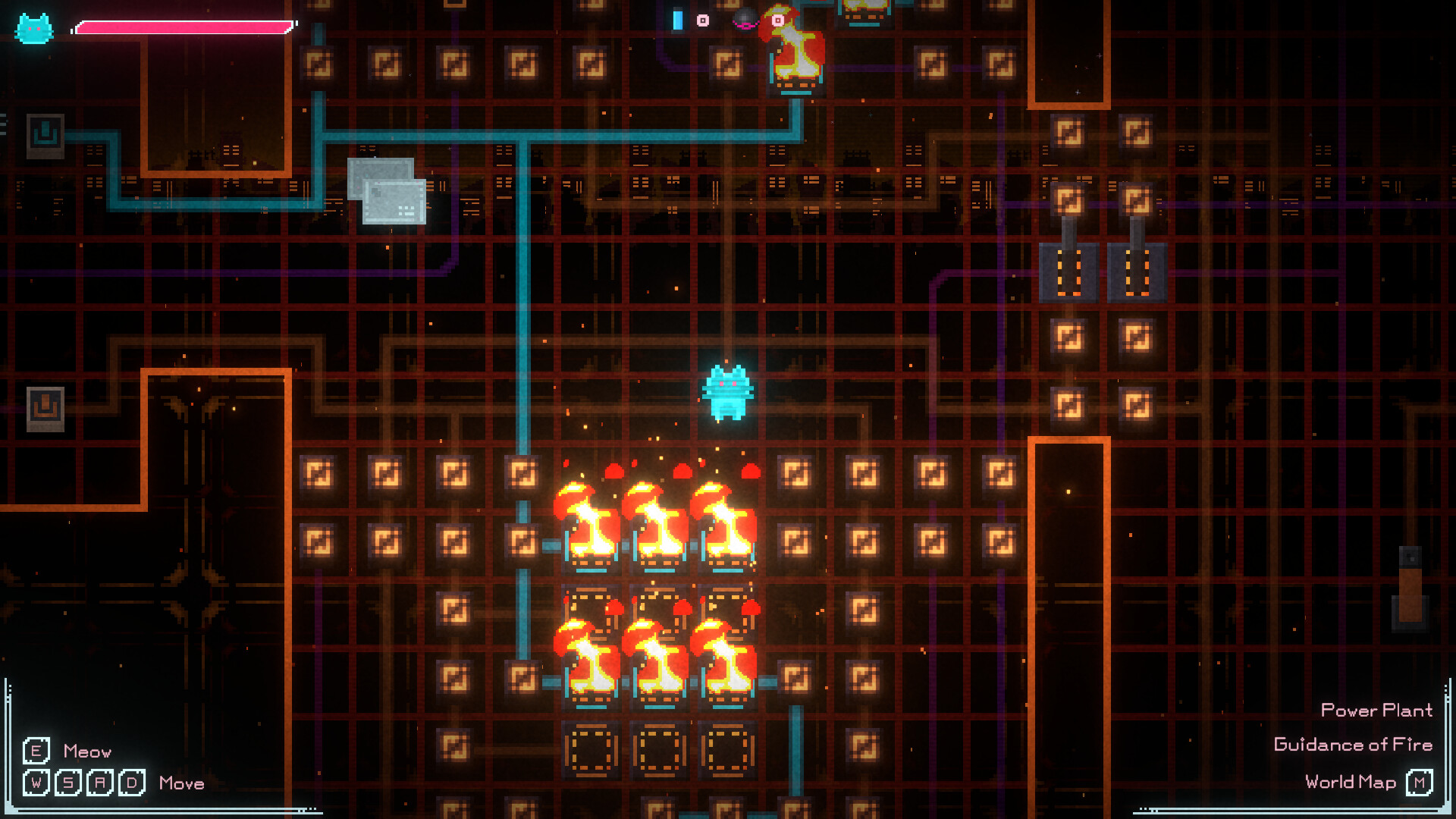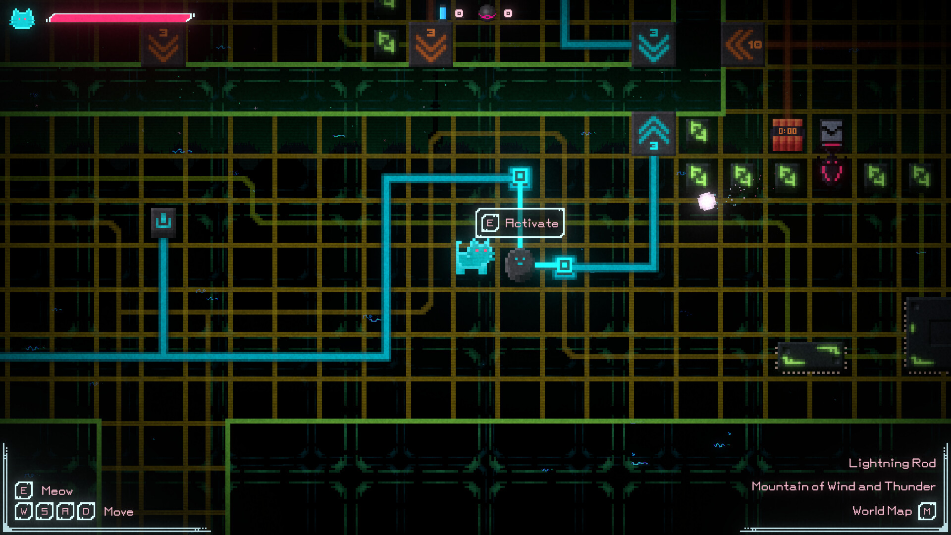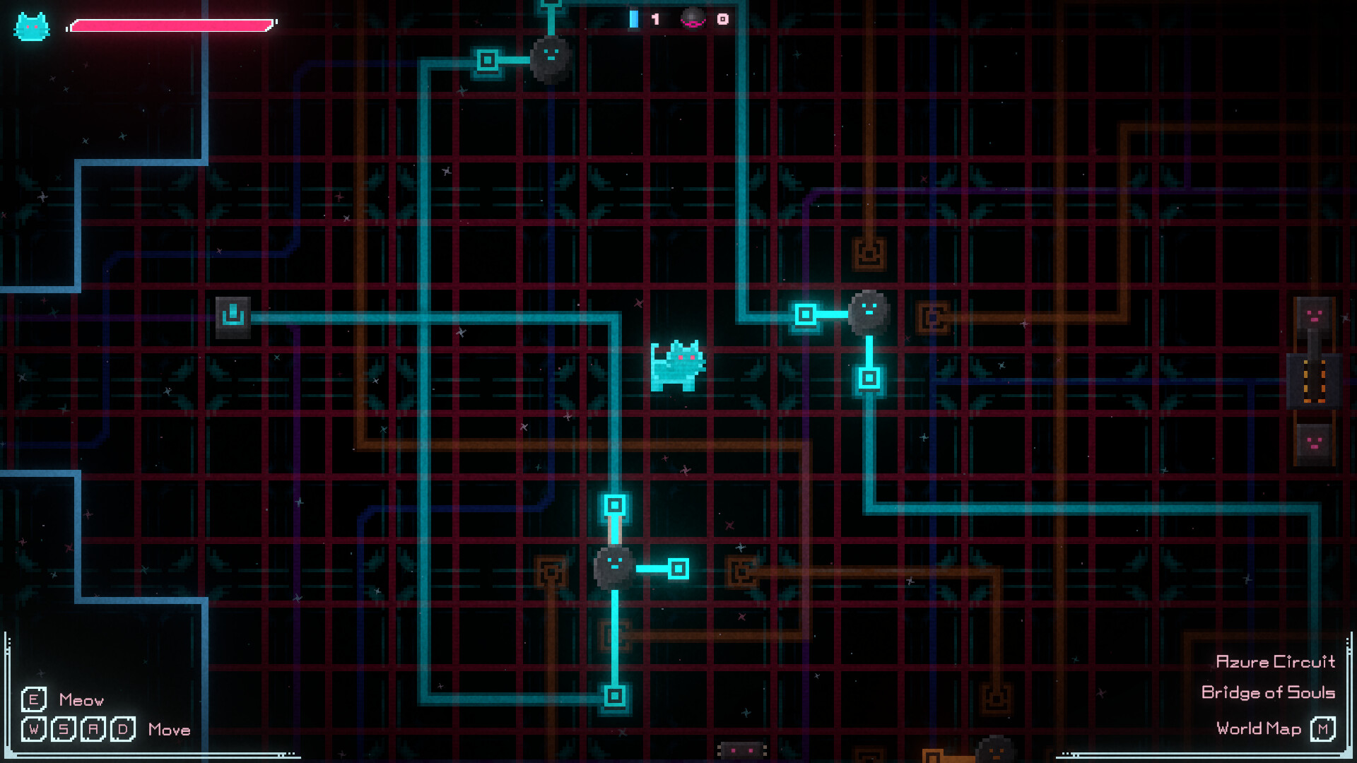 You are a tiny cat cast into a dreamlike world of electric circuits. Manipulate power sources and switches to send current through wires and operate various contraptions. You must muster all your wisdom to solve the puzzles ahead.