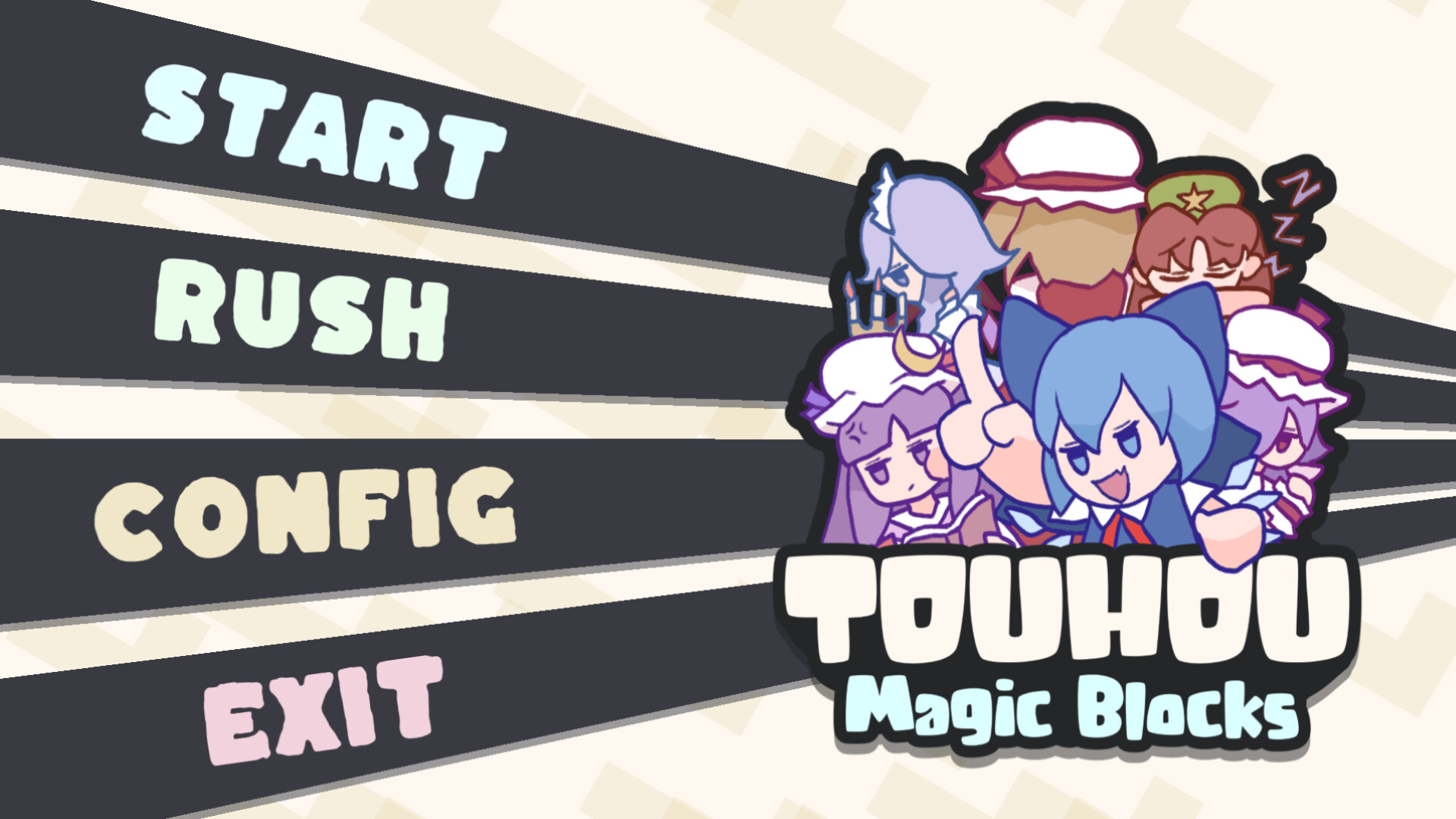 A Touhou Project fan game combining danmaku with block stacking! Survive bullet hell and special card attacks and counter with strategic block stacking!