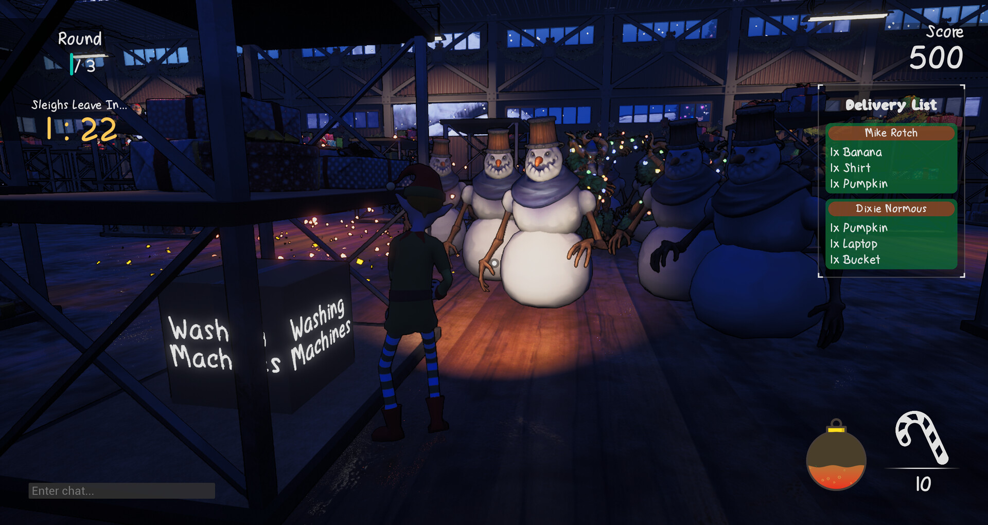 Werehouse is a co-op haunted night shift where you and up to 3 other overworked elves package presents for Santa. If stocking the sleigh trucks an hour before Christmas wasn’t stressful enough, you’ll be fighting for your life against holiday monsters while you’re at it.