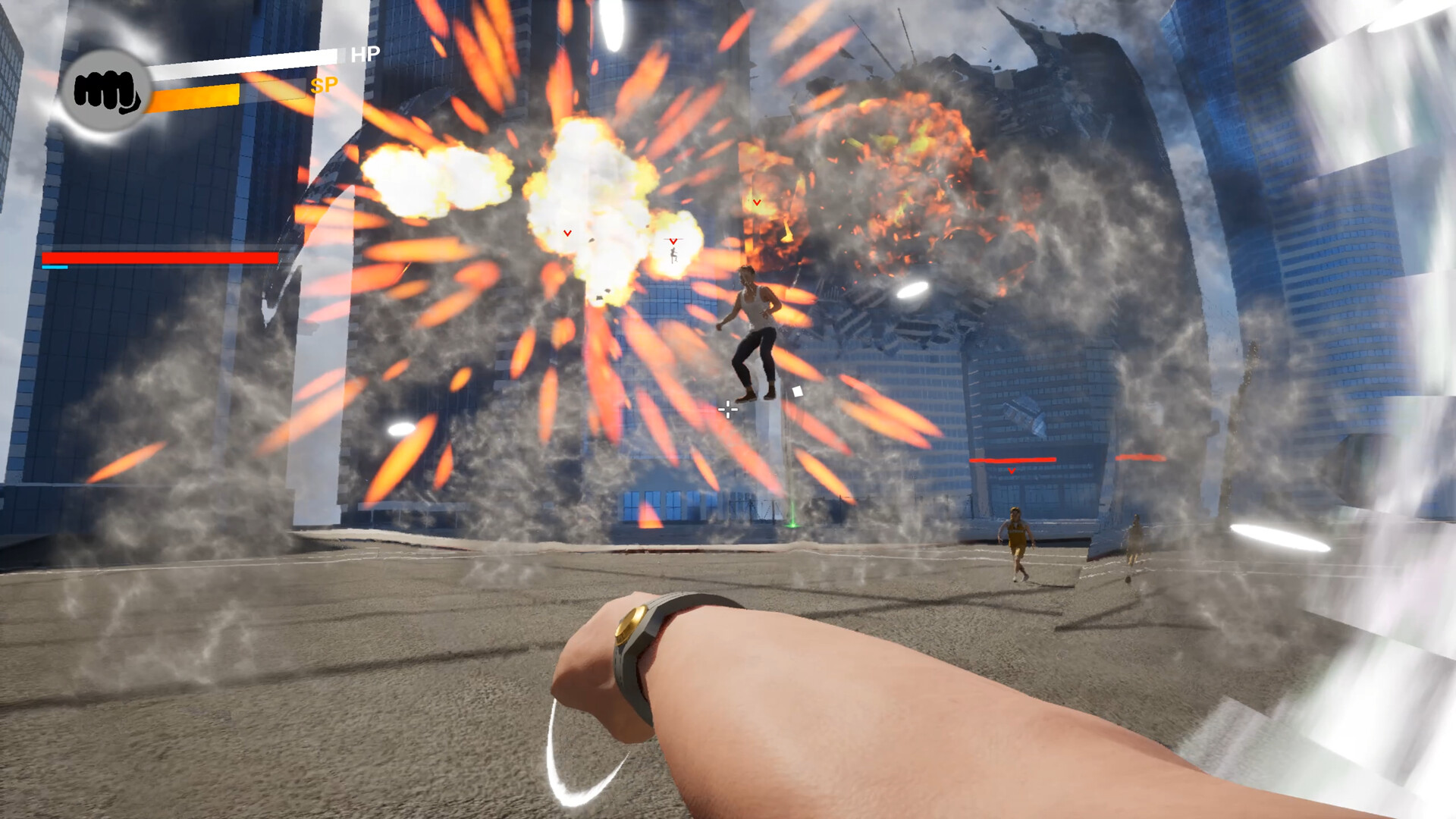 First-person superpowered high-speed combat.Exaggerated physics destruction—destroy everything from streetlights to skyscrapers.Explore diverse stages, complete challenges, and defeat enemies.
