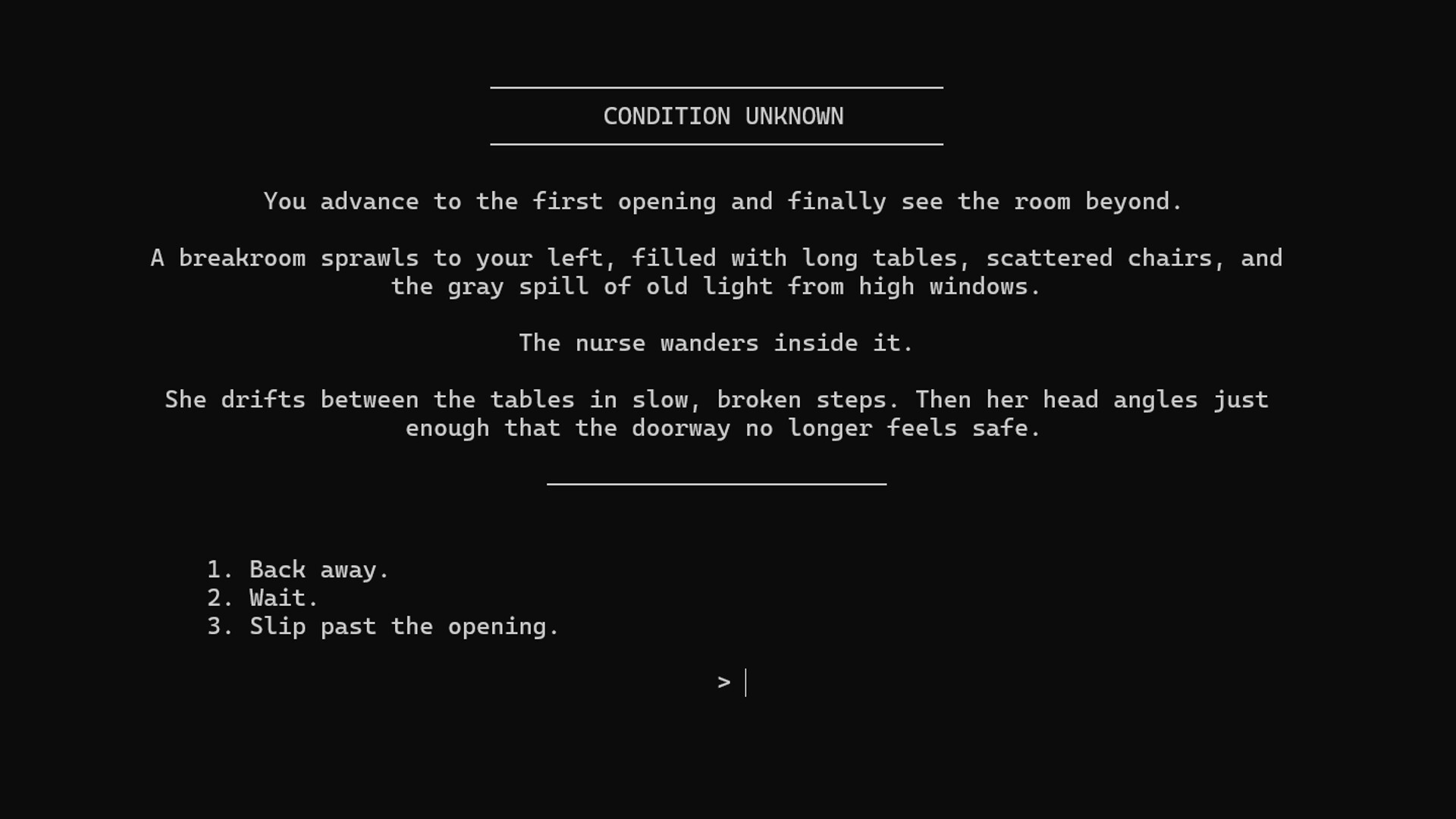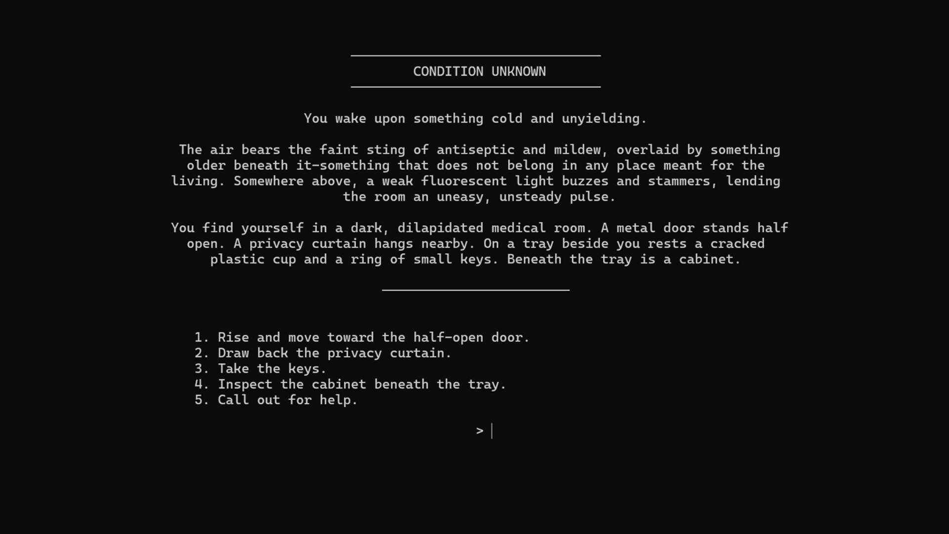 A text-based psychological horror experience set inside a hospital where something is deeply wrong — and death may not be the end.