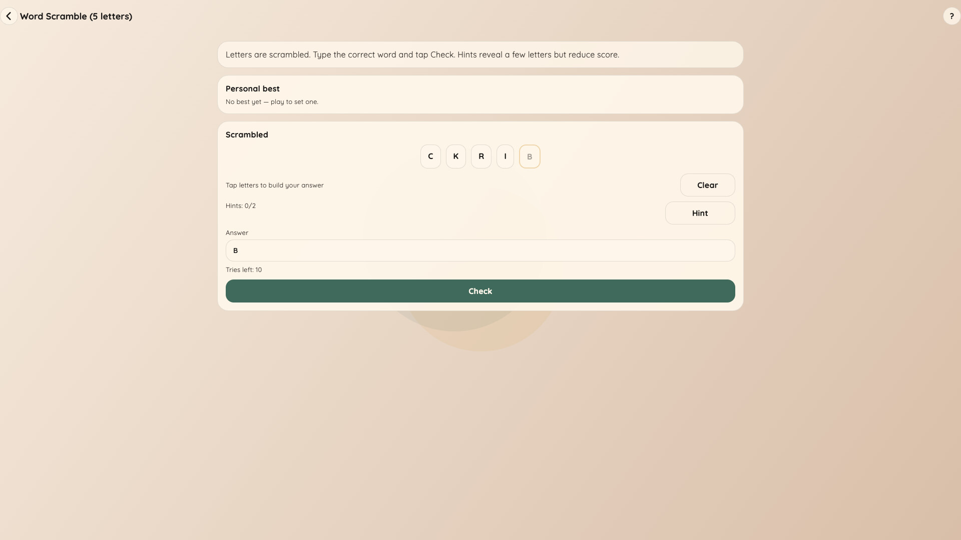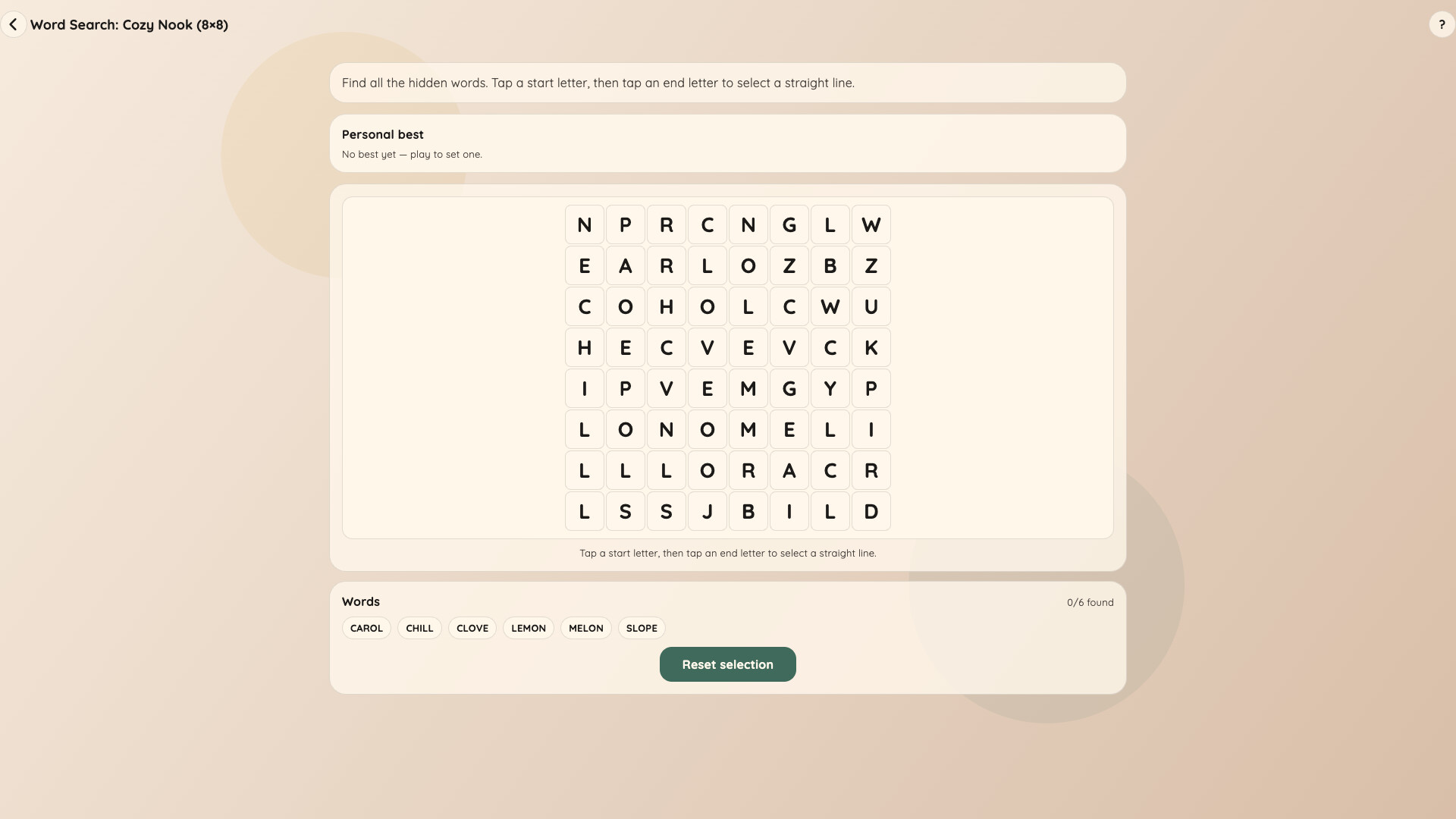 A cosy collection of 17 handcrafted puzzle types to unwind with. Logic, word, and pattern challenges — at your own pace, one puzzle at a time.