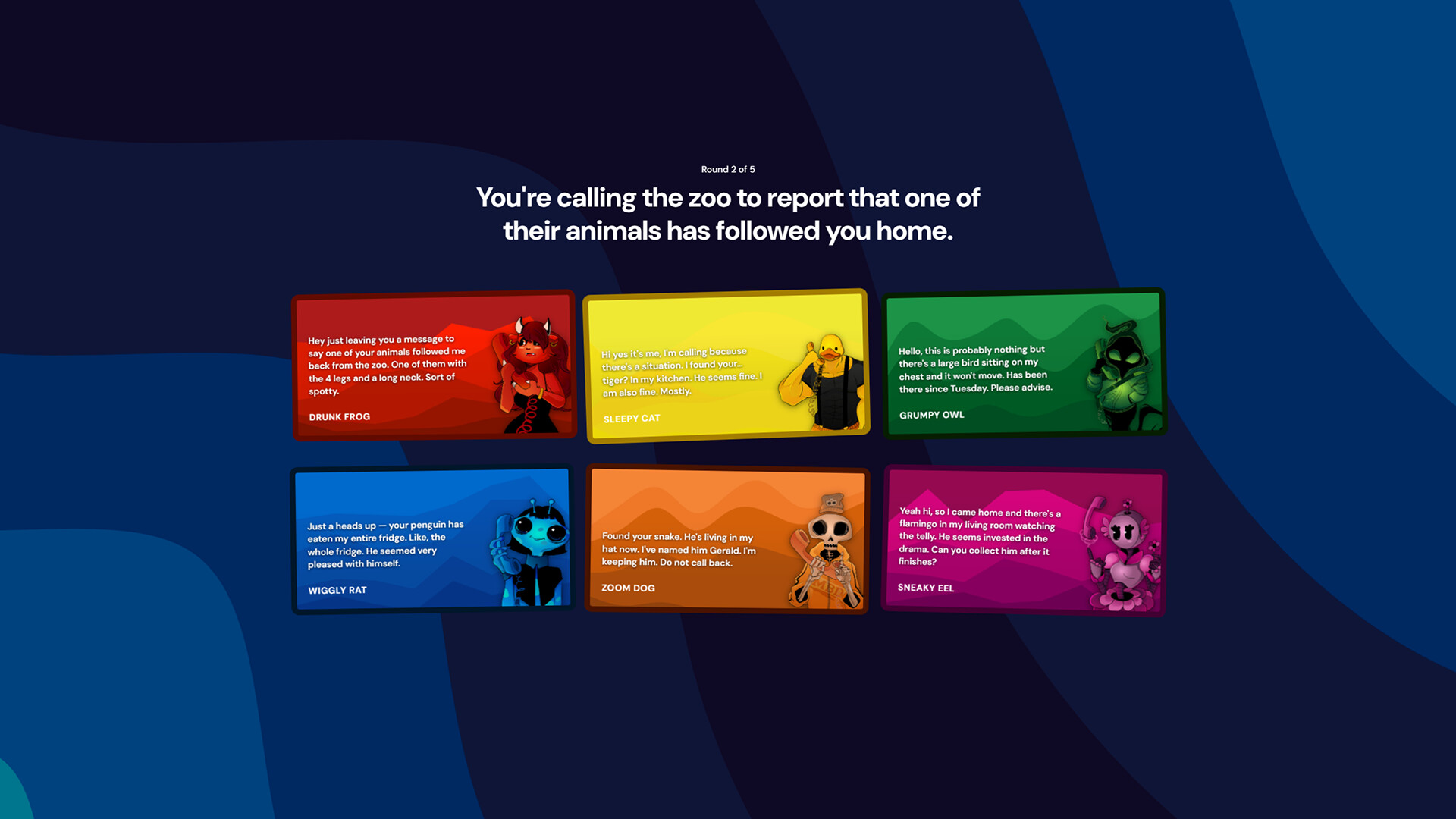 Test your wits in this funny party game where players record their voices to answer prompts that set them up with increasingly humorous and silly scenarios. Players vote for the funniest answer. Endless fun for up to 6 players and even more with audience voting!