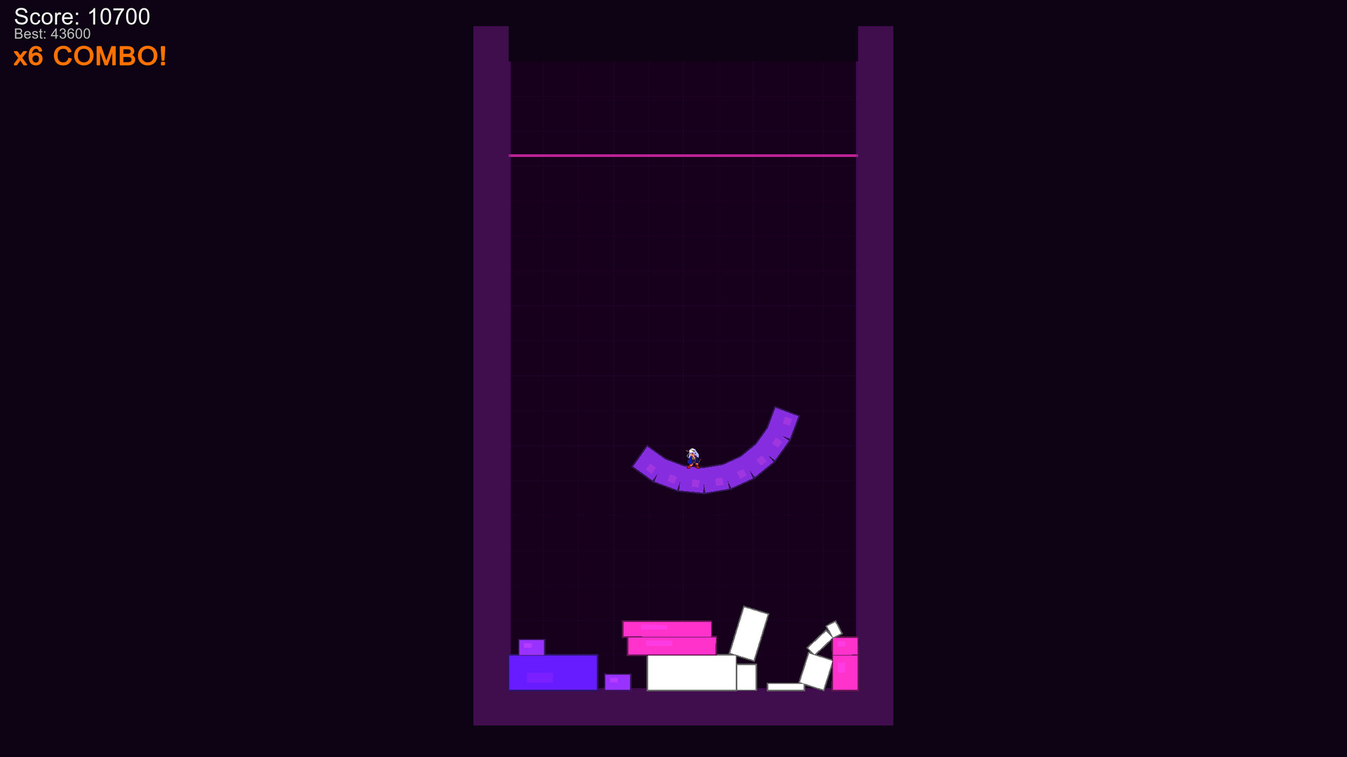 Ride falling blocks, jump between pieces, and clear rows in this physics puzzler