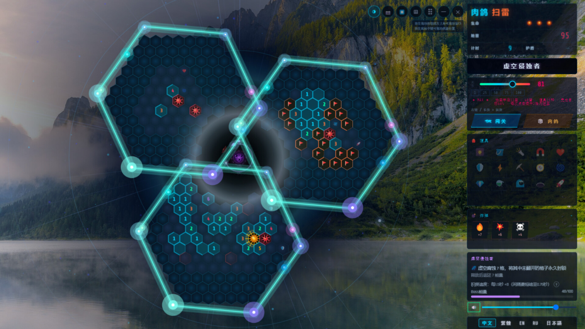 Hex Minesweeper meets Roguelike — on a fog-shrouded hexagonal board, use 16 tools like fireworks, black holes, and magnets to clear mines, collect rogue cards, to reveal more tiles and defeat 8 unique Bosses. Runs as a transparent overlay on your desktop. Pick up and play anytime.