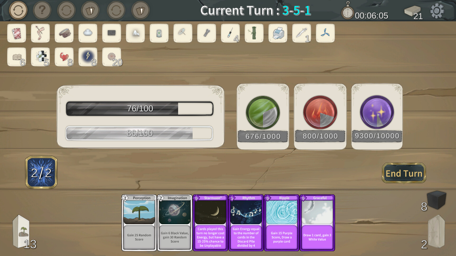 Take a seat at the table, play cards to earn points, construct a unique deck, and leverage powerful tags to enhance your strategy. Make crucial decisions in ever-changing random events, and strive to achieve victory within the 36 rounds of your journey.