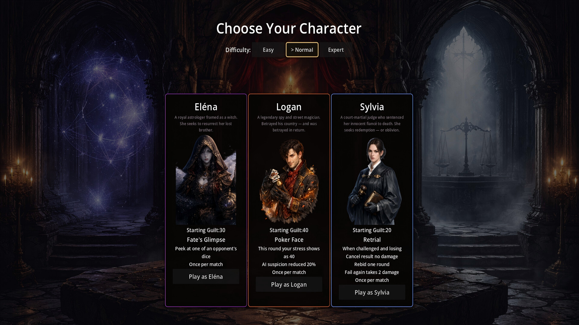 A psychological bluffing roguelite where every lie could be your last. Deceive, challenge, and survive your own madness.