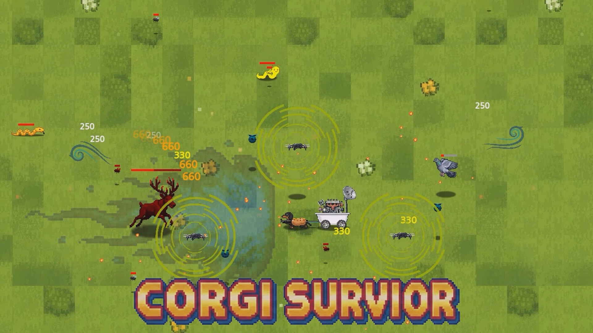 Cute dogs. Brutal survival. Fight off relentless swarms of insects and wild beasts in this fast-paced roguelite survival game. Simple controls hide deep upgrade choices as you battle to survive. Reach Level 50 and defeat the final boss.