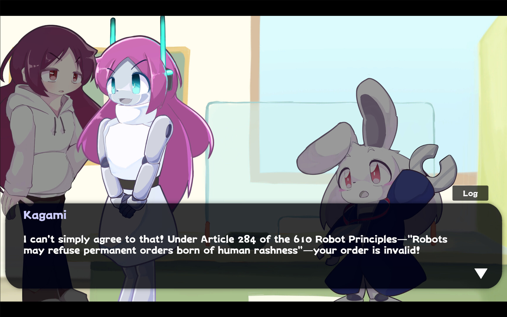 Kagari, a withdrawn child, and Kagami, the robot living in society as their stand-in—Only one will be recognized as the real Kagari. Your role is to gently observe their choices and decisions. Your role is to gently observe their choices and decisions.