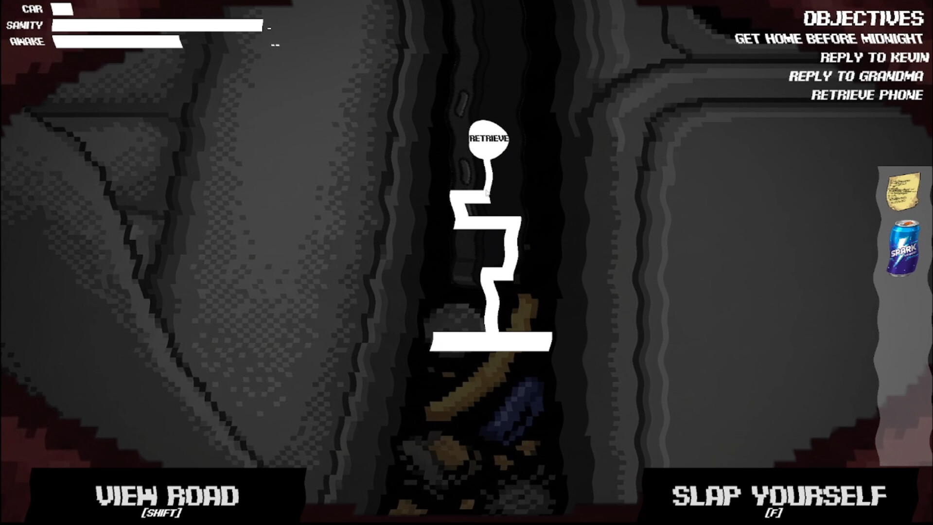 Experience driving home late at night, your boss needs answers, your grandma needs help with her router, THUD! You hit a deer. You begin to doze off, SLAP! Reality kicks in. But the terrible astygmatyzm and thoughts won't leave you alone...