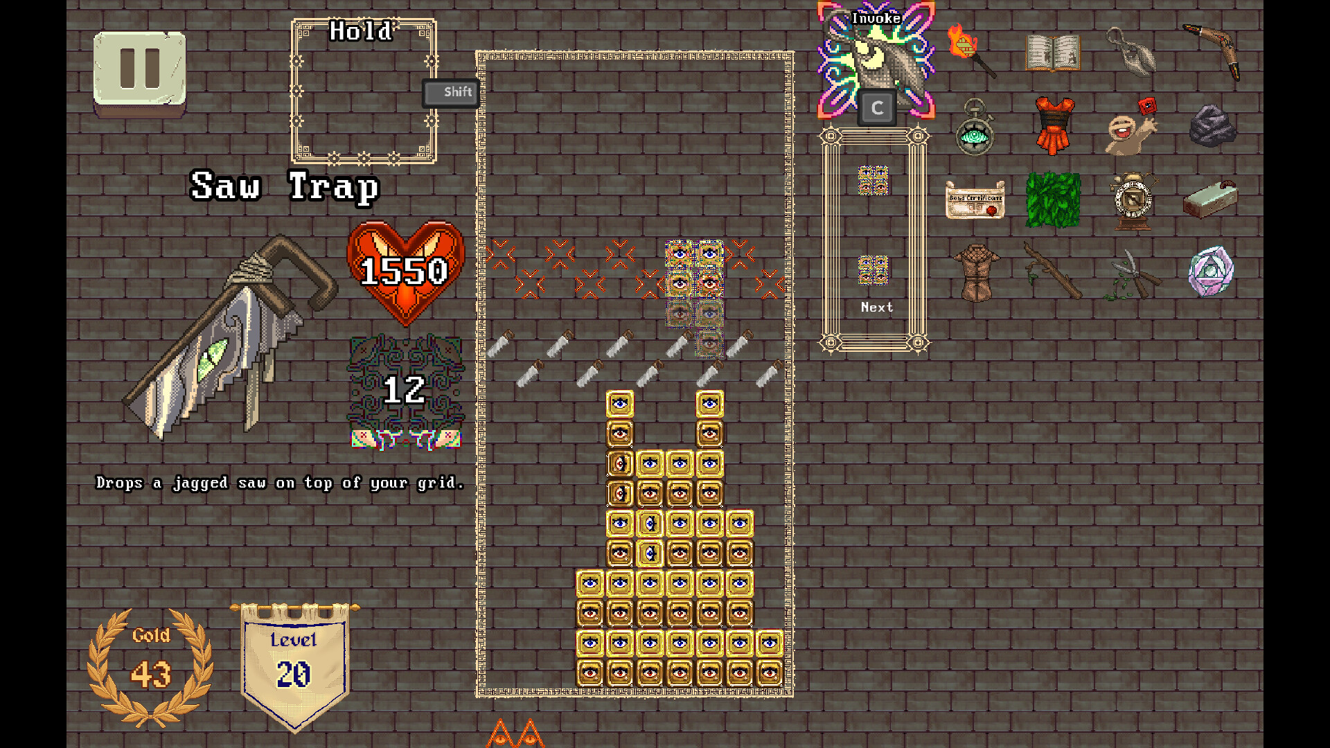 Defeat the dungeon of Eyehold with the help of the blocks within in a brand new puzzle roguelike. Drop pieces to clear away the damage from the attacks of the monsters within and fight back.