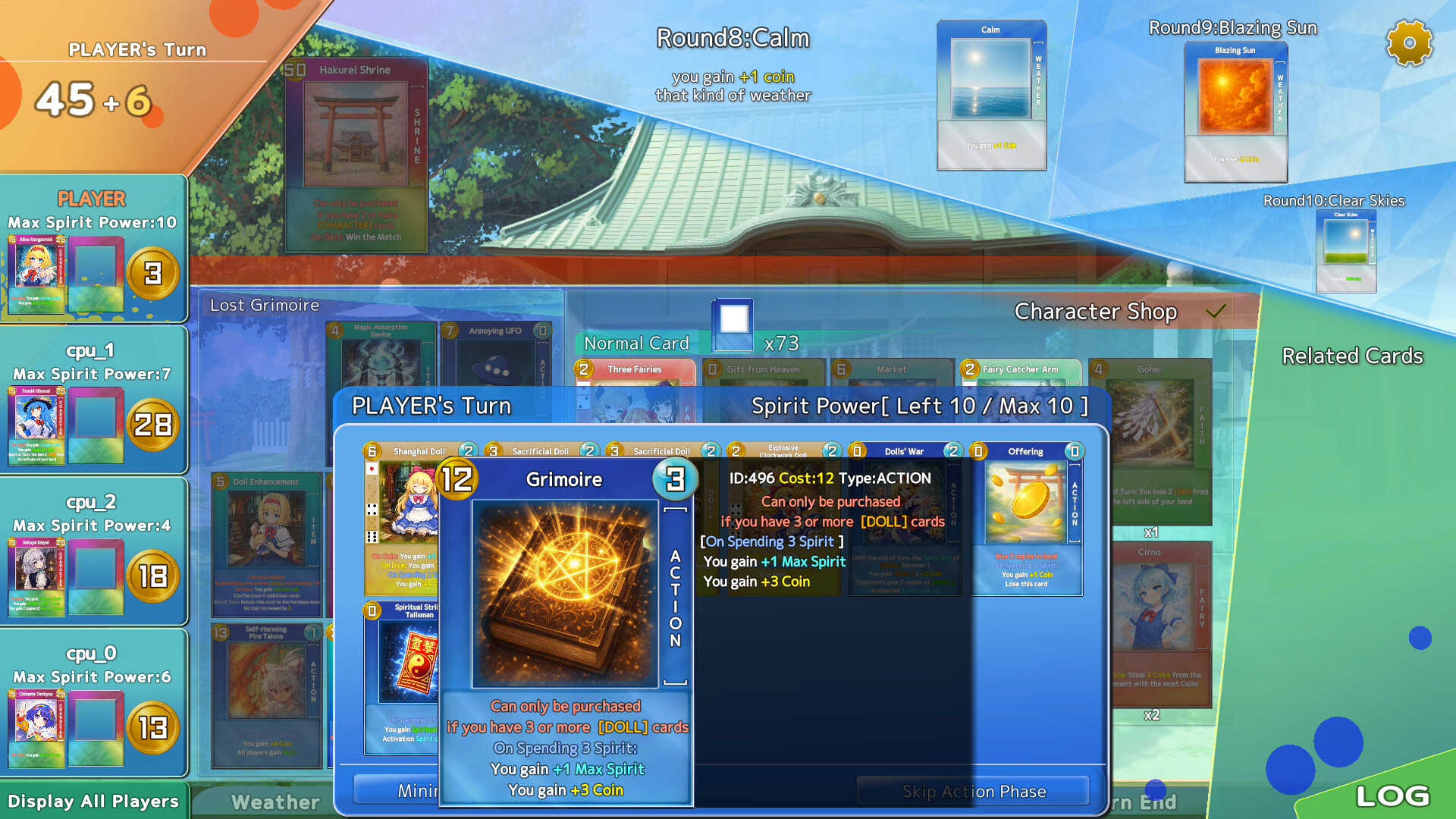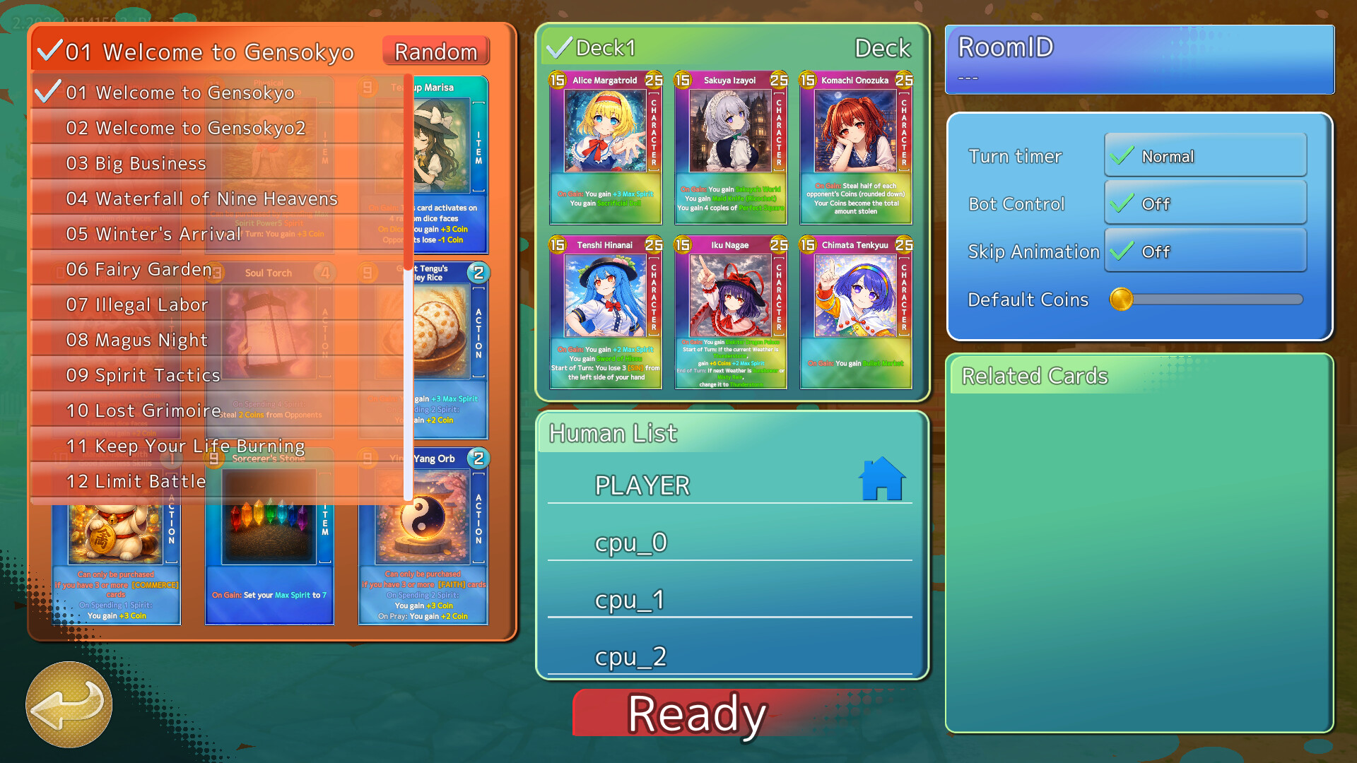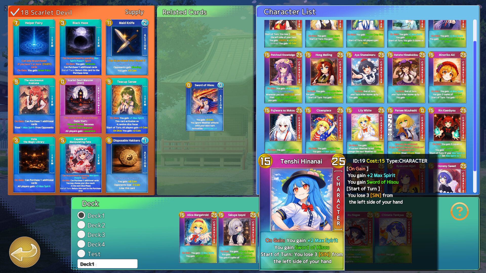 A Touhou-inspired deckbuilding battle game! Build your deck from 150+ cards and 25+ characters and race to buy out the Hakurei Shrine before your rivals. (Online battles available!)