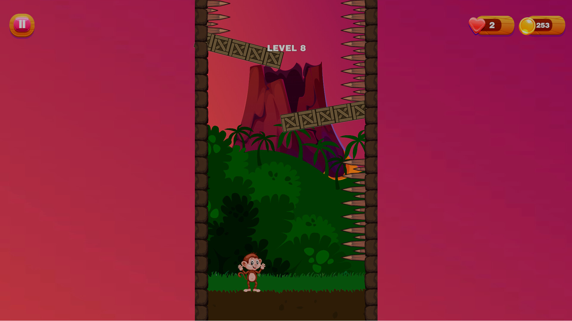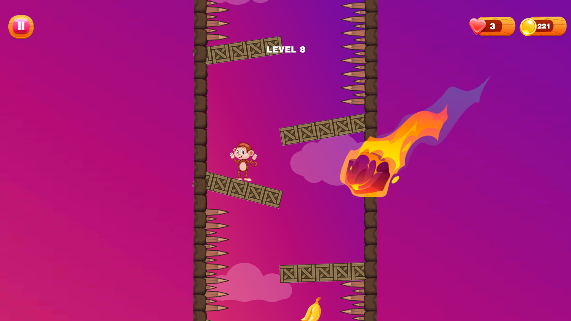 Jump down, collect bananas, and survive as long as possible in this fast-paced 2D casual game.