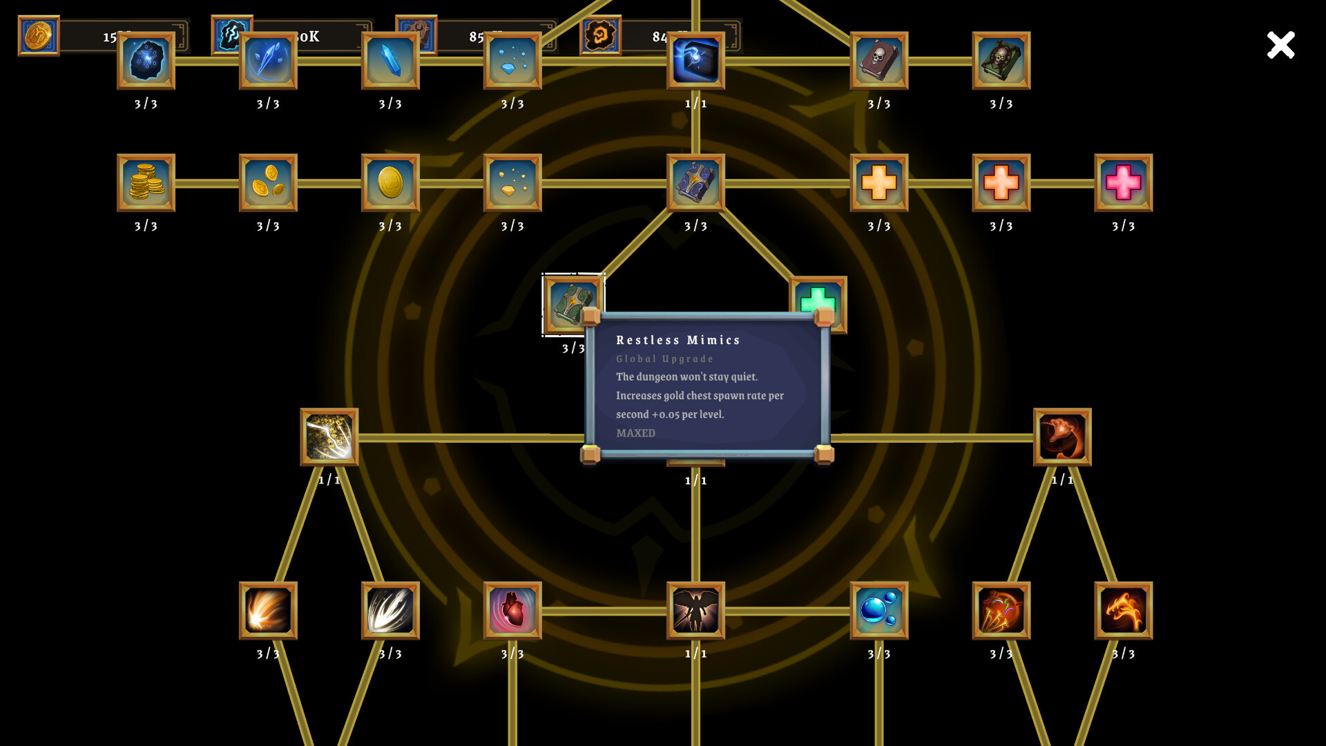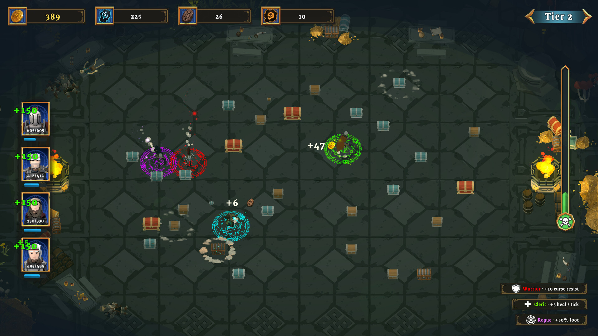 Lead 4 auto-running heroes through dungeon runs, open chests, survive the curse, and spend your loot on permanent upgrades.