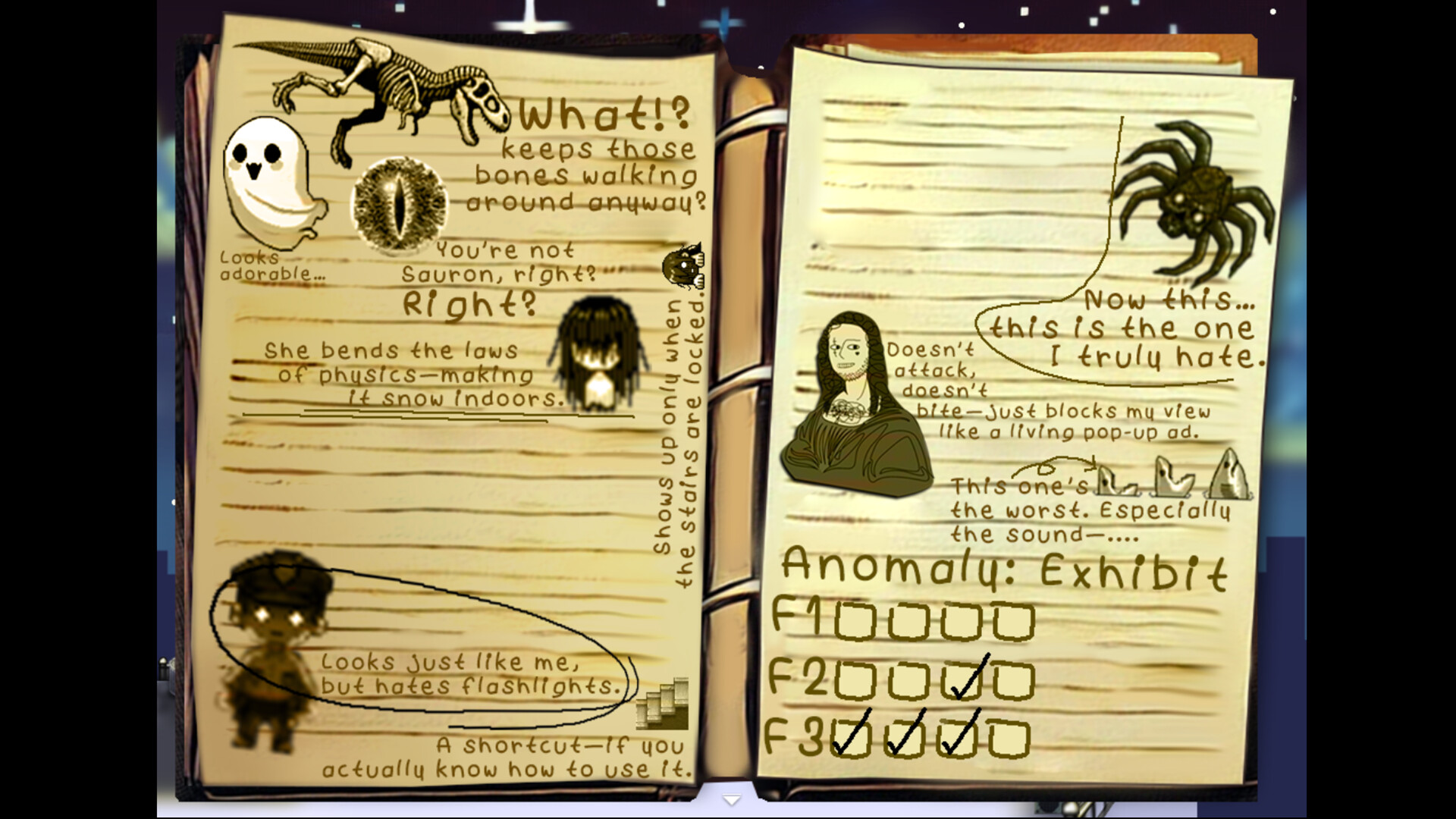 A dark-humor horror puzzle game where you investigate museum anomalies, uncover hidden clues, and survive your first night as a security guard.