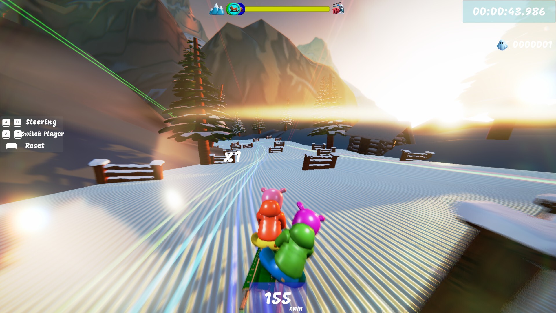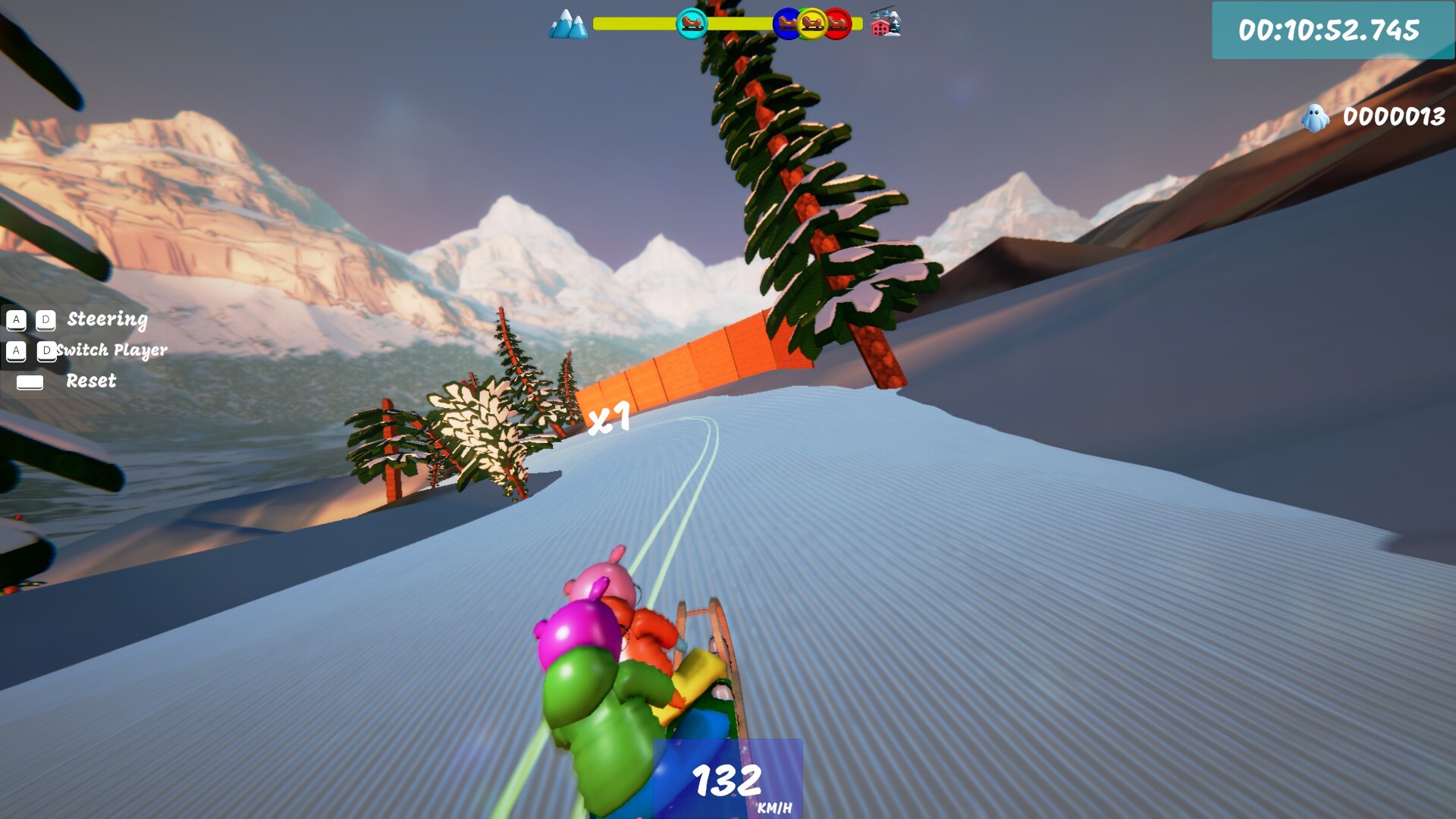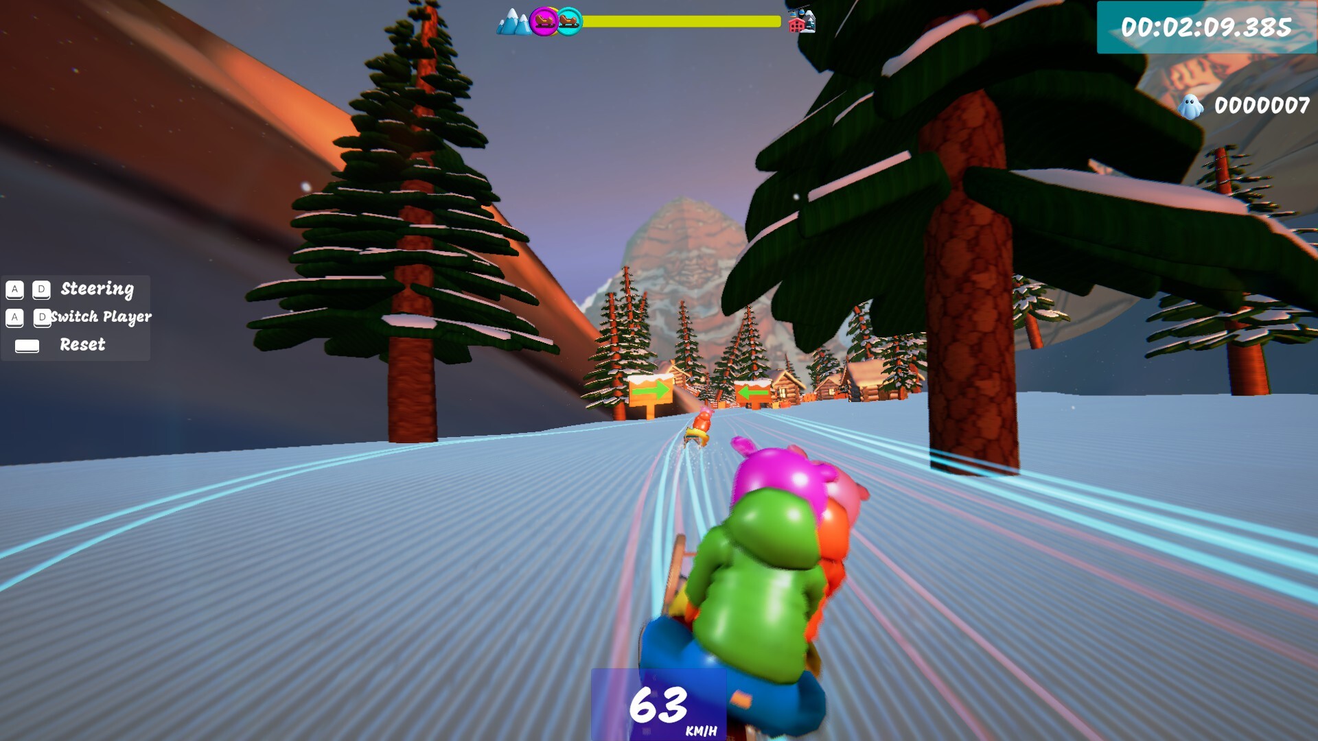 Race down icy slopes packed with sharp turns and unforgiving obstacles. A fast, chaotic co-op game built for speedrunners and friendship stress-tests.