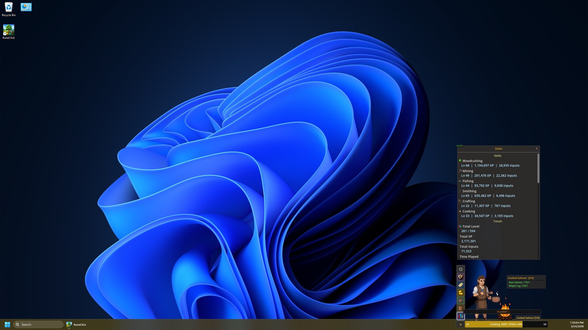 A medieval desktop companion RPG that runs as an always-on-top overlay. Your real keyboard and mouse input drives your character's progress. Chop, mine, fish, smith, cook, and craft while you work. Every click counts.