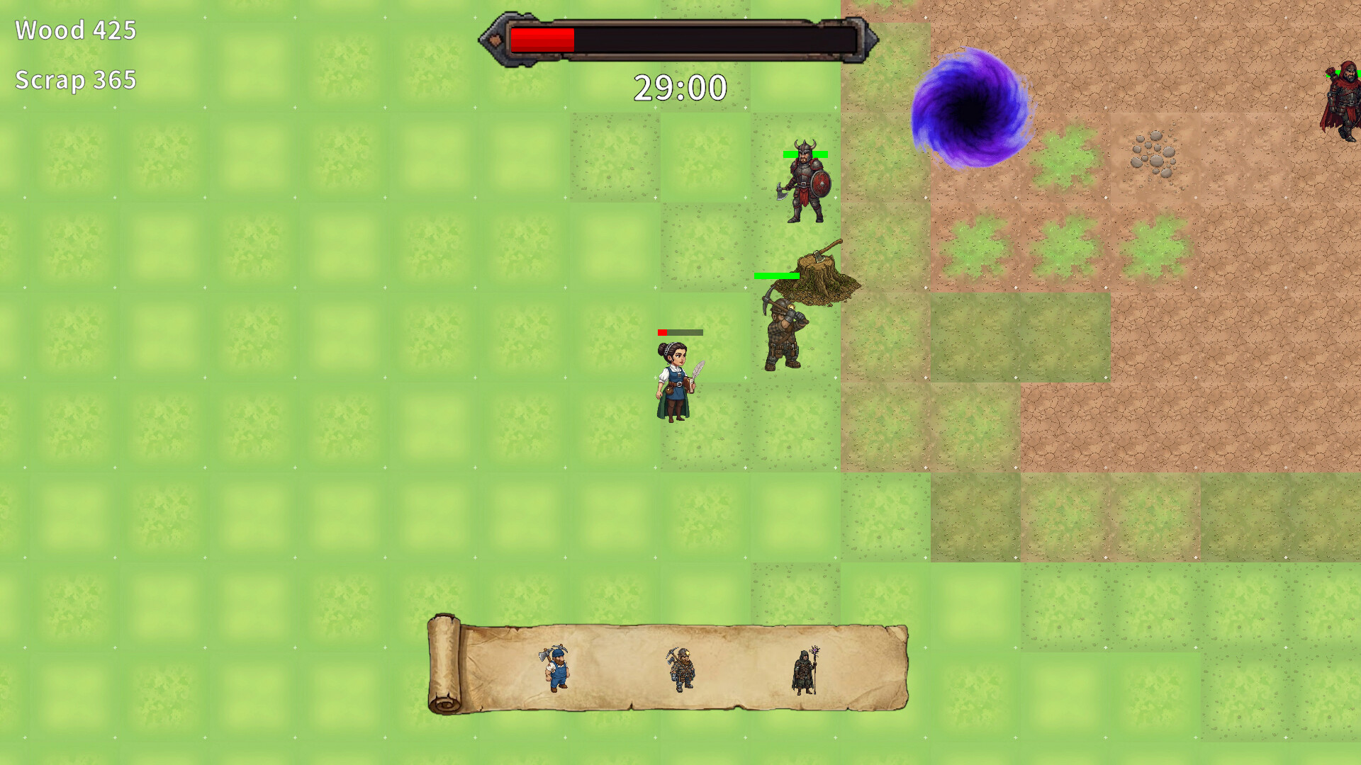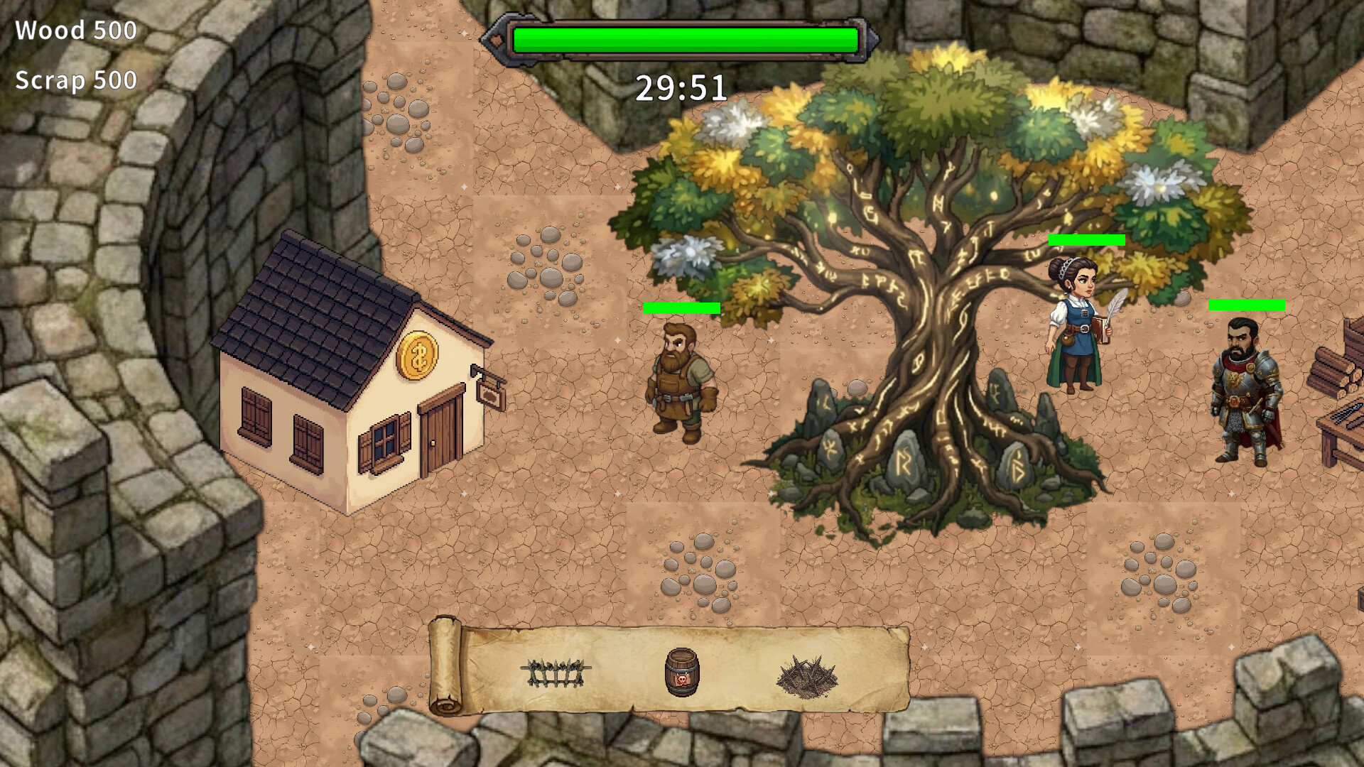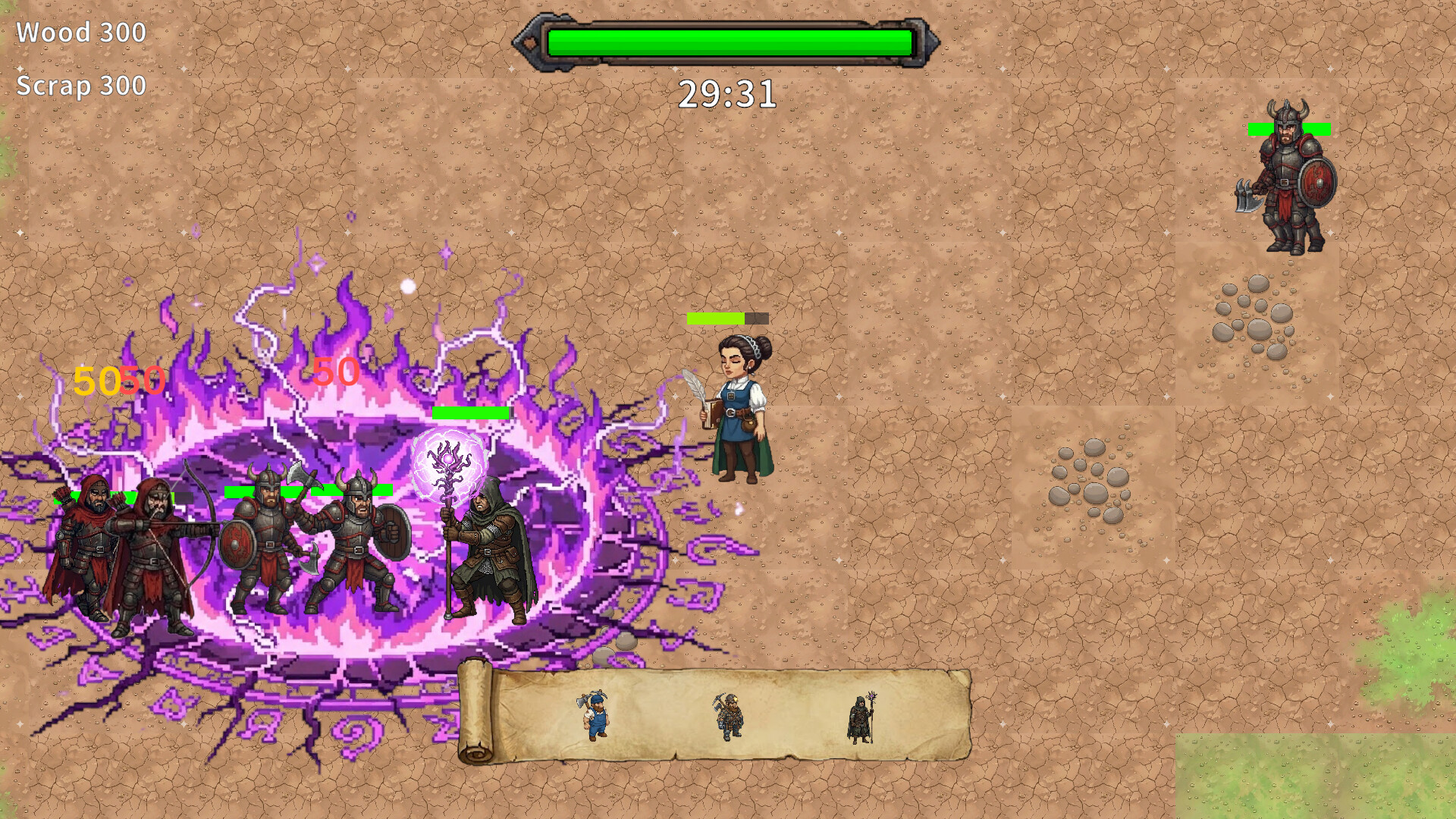 Three experts must cooperate to save the village. One player can control three characters simultaneously. You can summon powerful units by spending large amounts of resources. Gather resources to continue your defense. Construct buildings to slow down the enemy's advance.