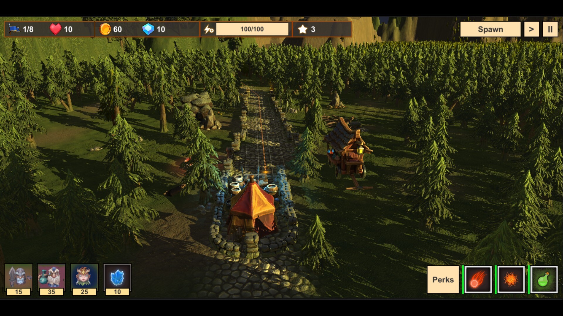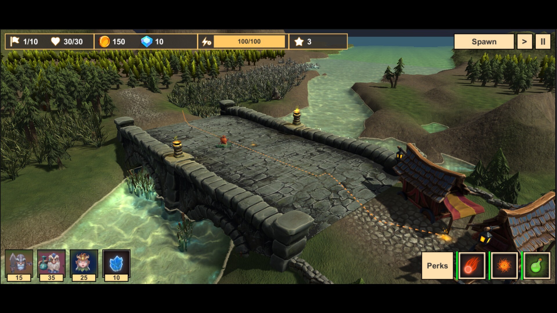 The roads are under siege. Command a knight, wizard, and druid to stop waves of monsters in this fantasy strategy defense game. Save gold between missions, plan your defenses carefully, and survive 8 escalating levels where enemies grow stronger and attack from multiple paths.