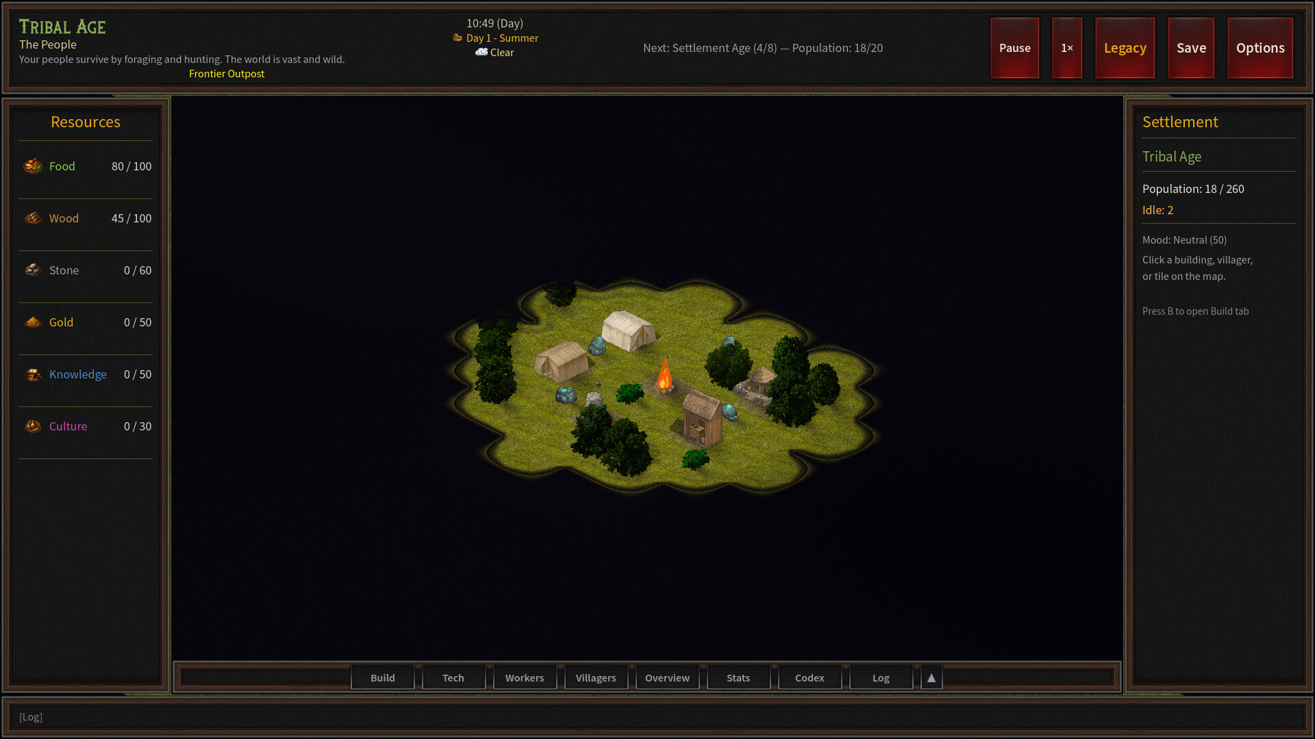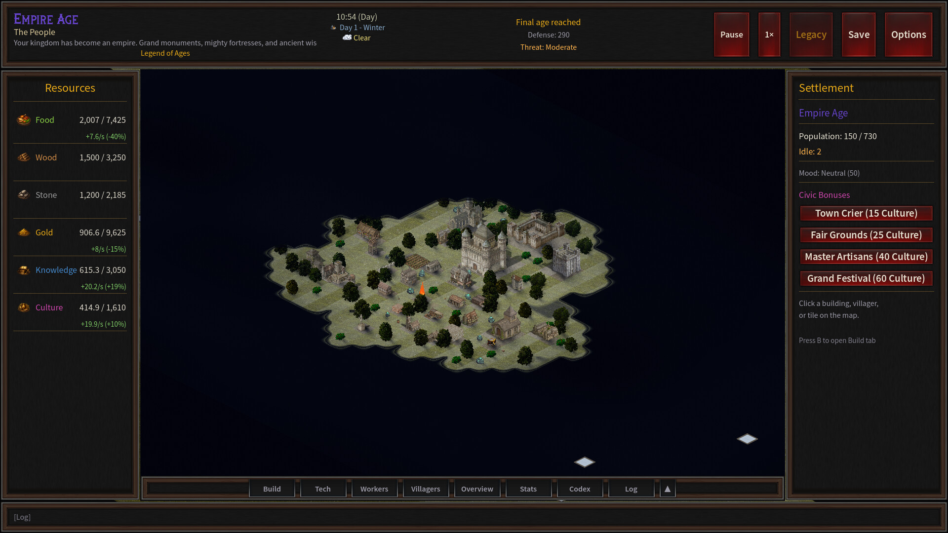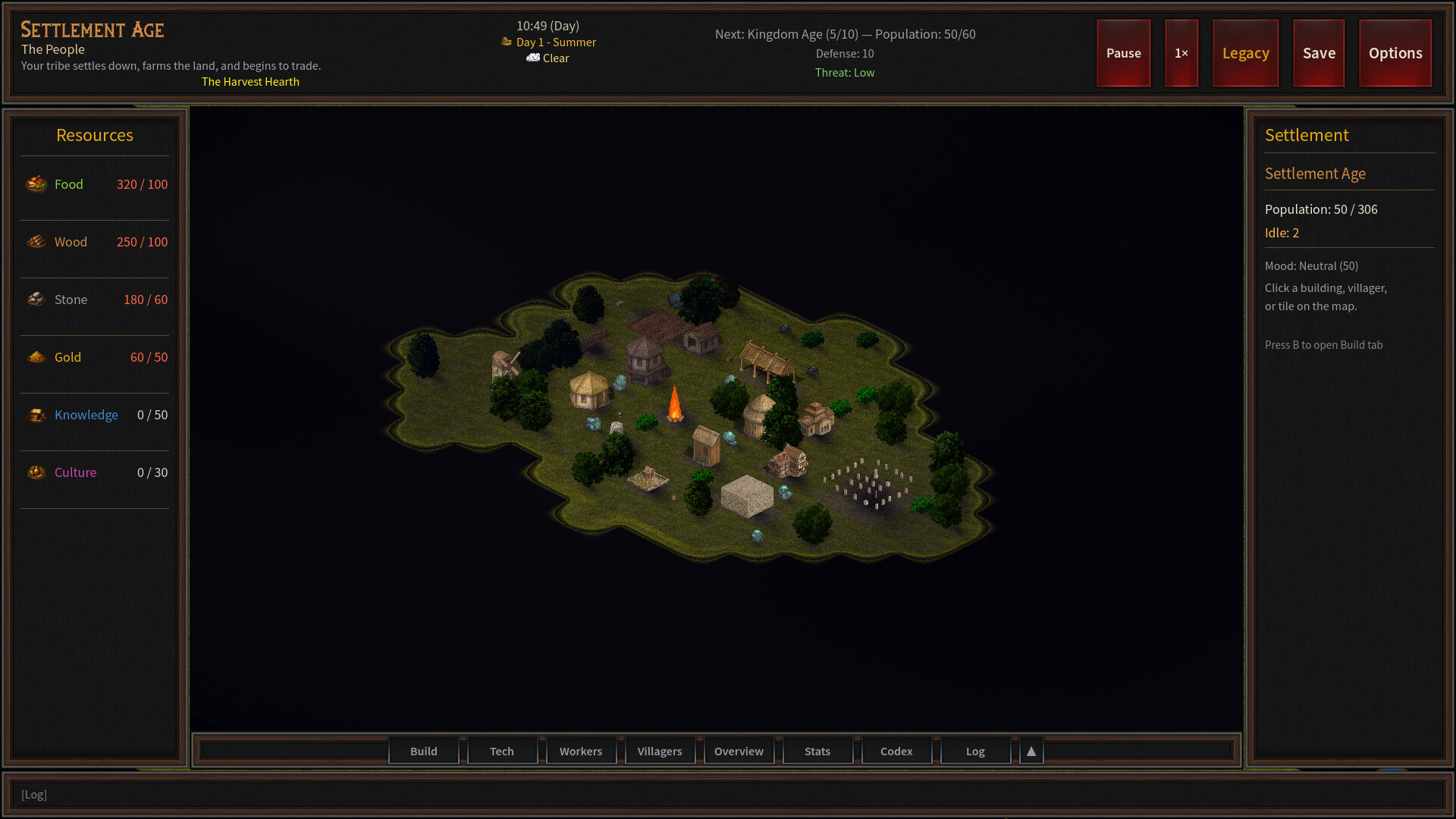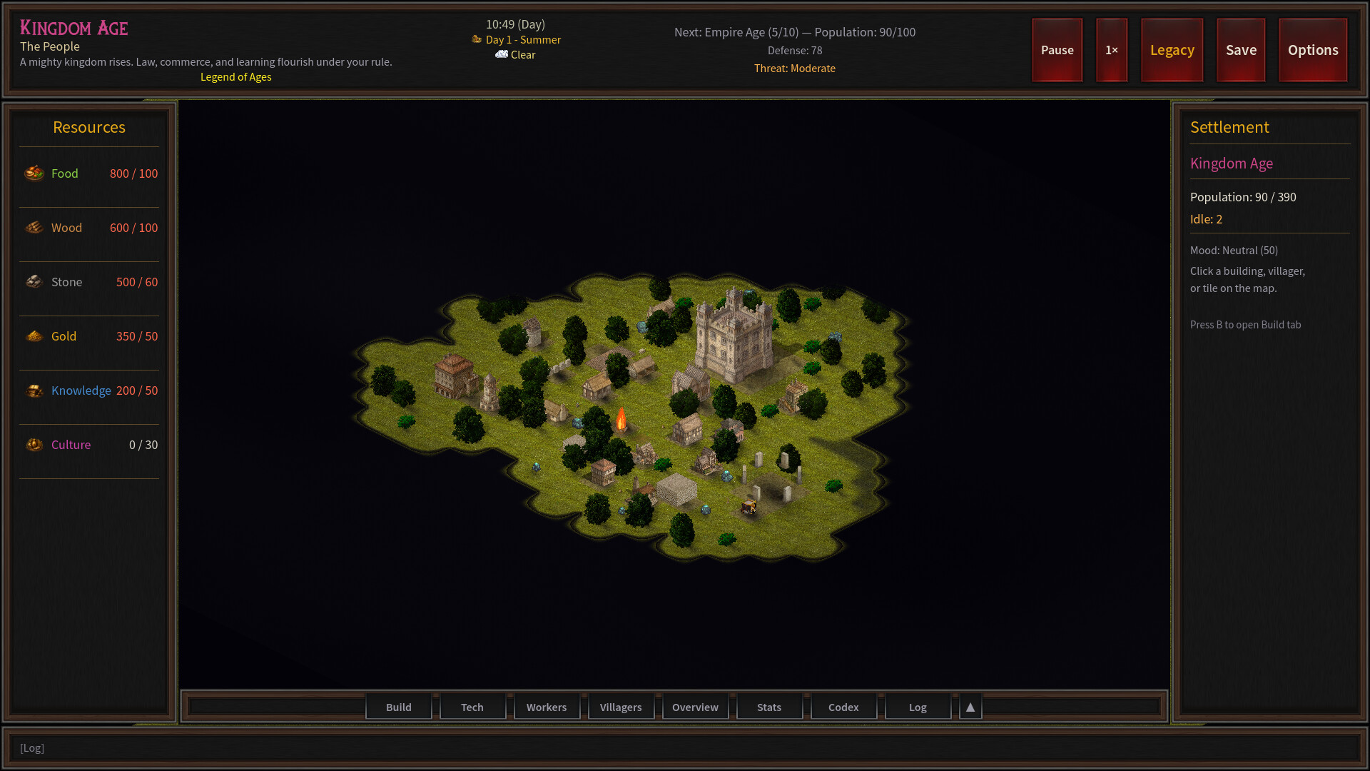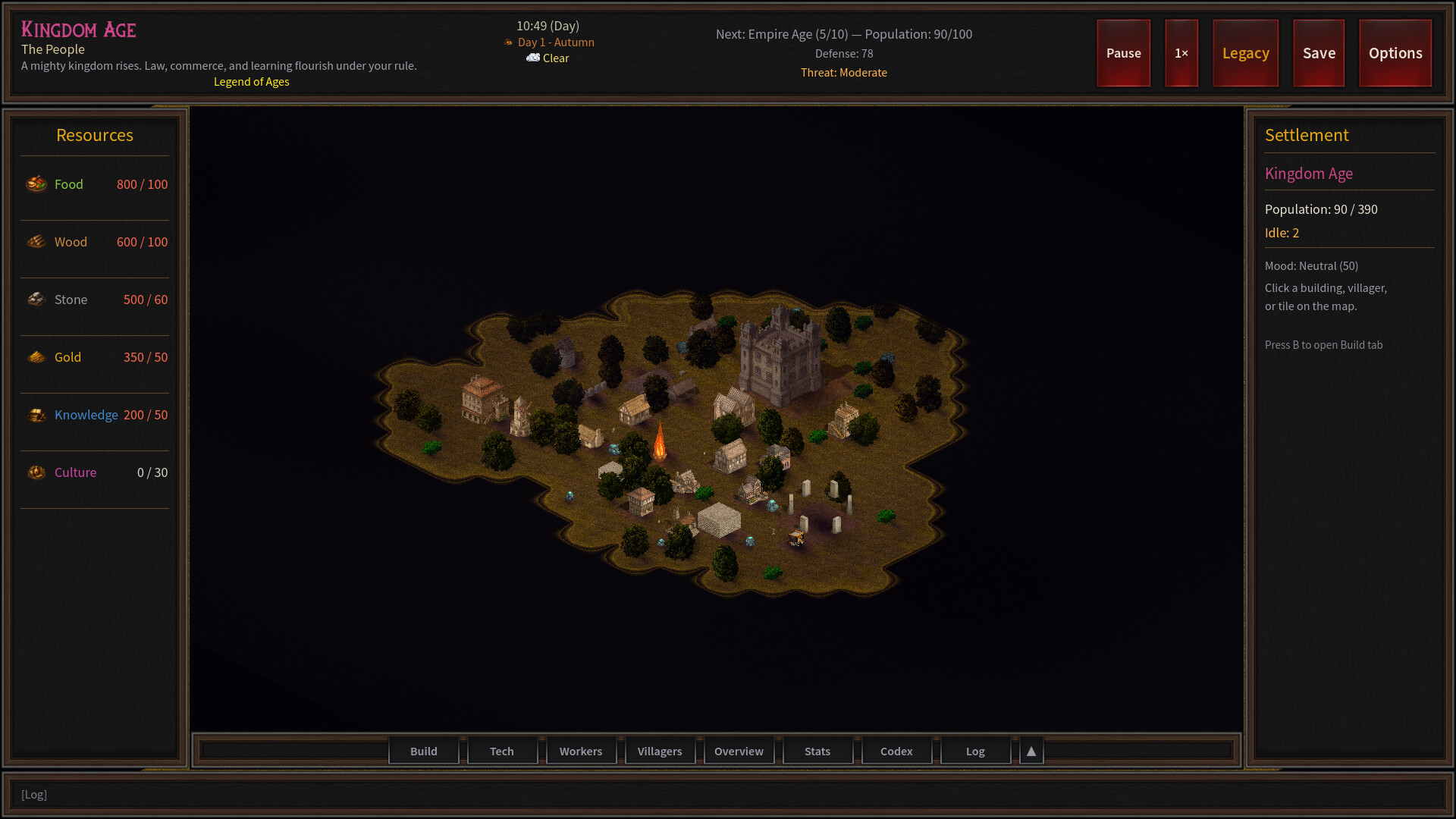 A survival city-builder where every villager has a name, a family, and a eulogy. Build their civilization through four ages, brutal winters, and monster raids — then prestige and let their legacy echo into your next run.