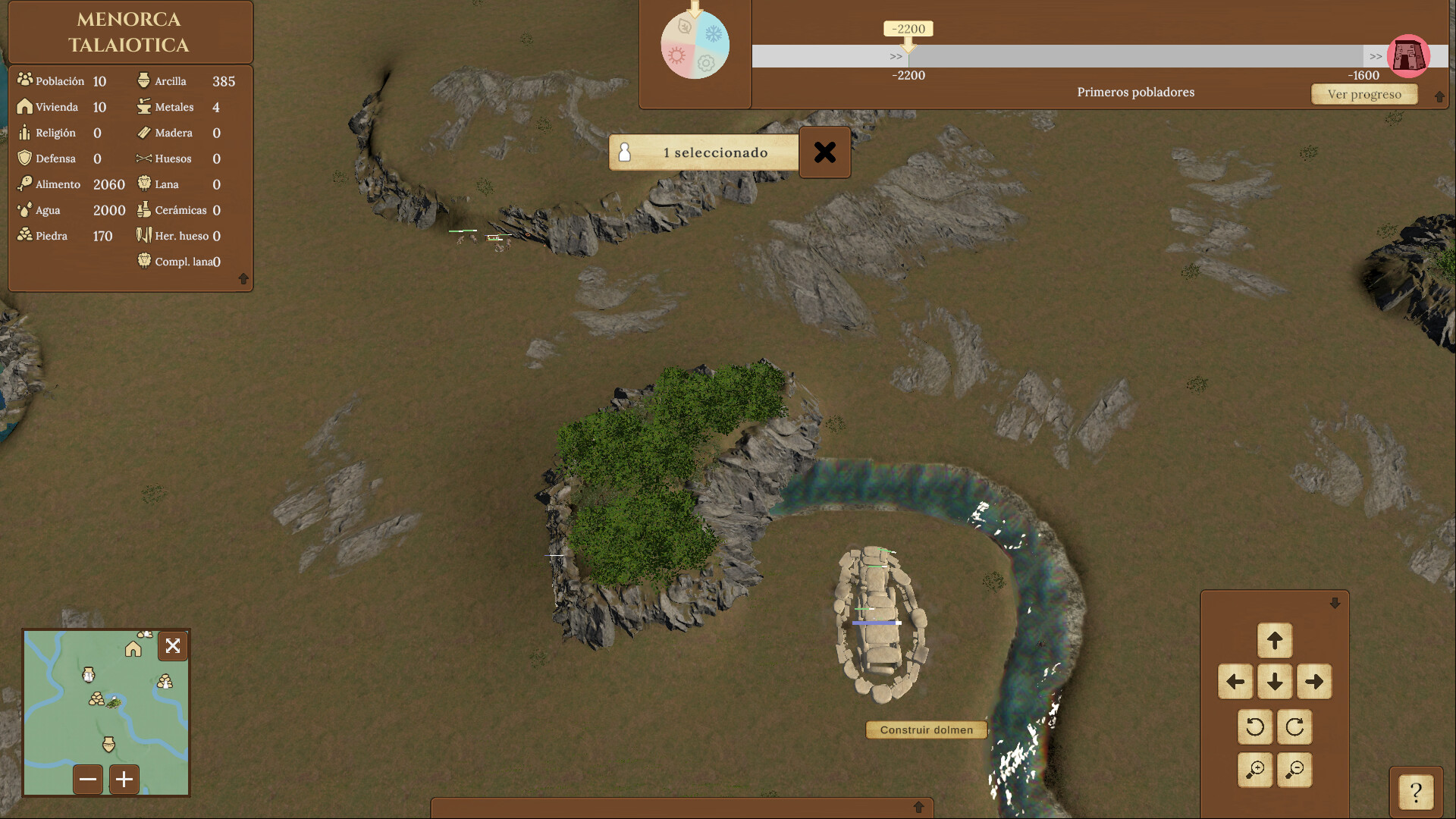 Menorca Talaiotica is a strategy game where you will face the same problems as the first inhabitants of the island of Menorca; obtain natural resources, water, shelter, food and survive the calamities.