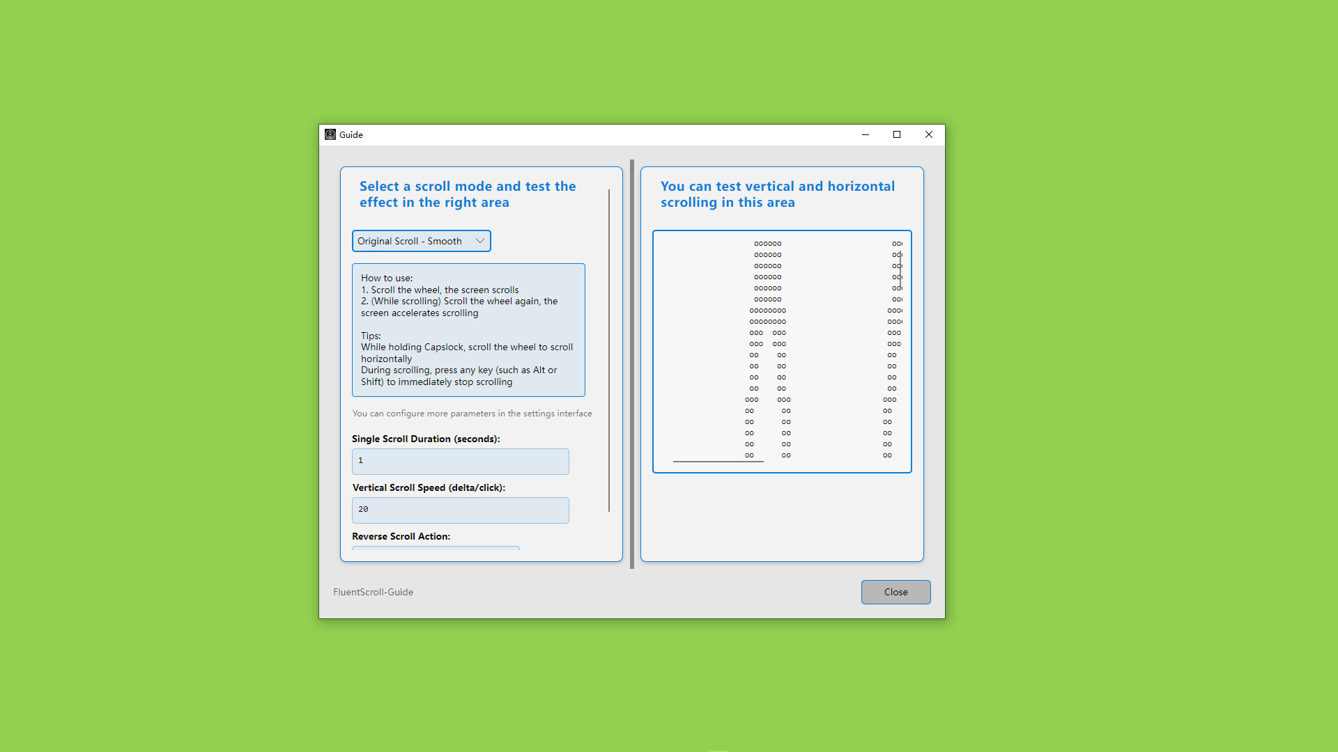 Redefine your scrolling experience! Scroll the mouse wheel to make the interface scroll continuously and smoothly. Take complete control of scrolling behavior through powerful custom configurations.